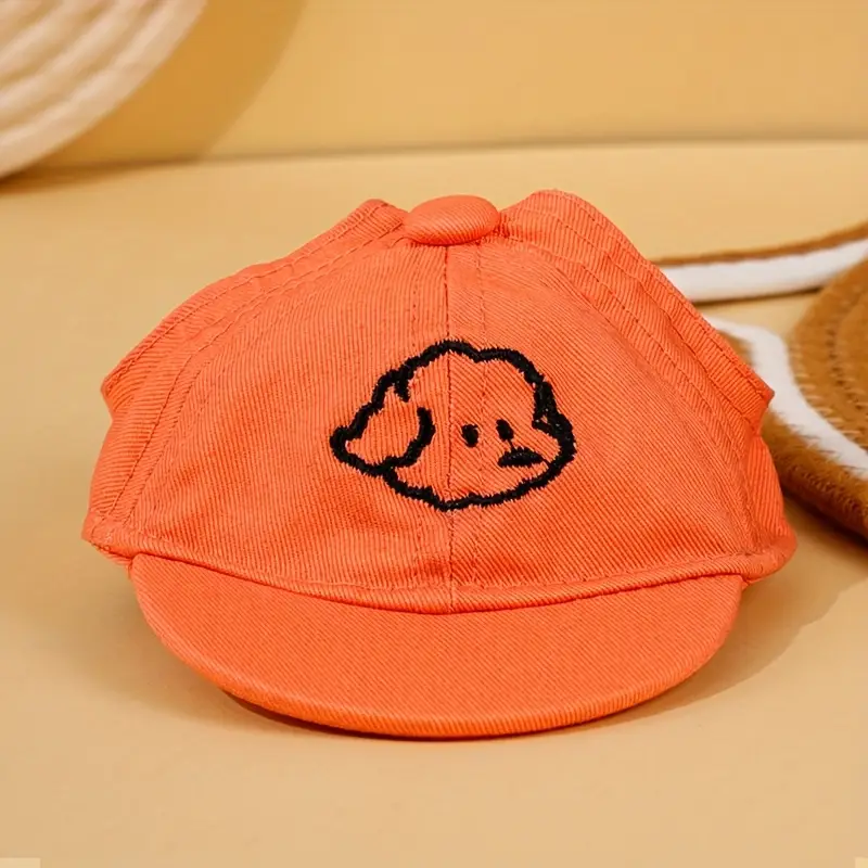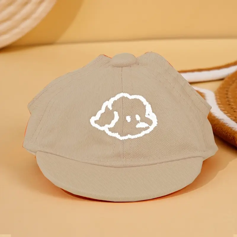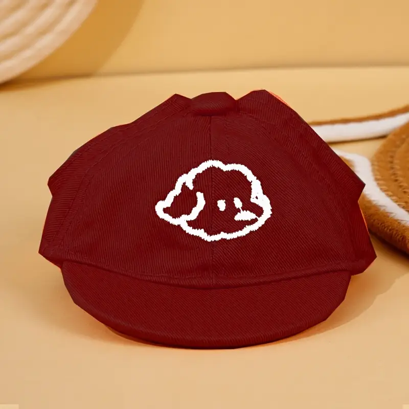 تصميم كرتوني: القبعة تحتوي على تطريز كرتوني لطيف على الجبهة، مما يضيف لمسة من المرح والأناقة. يمكن أن يكون التصميم عبارة عن شخصية كرتونية أو رسومات محبوبة للكلاب، مثل الكلب أو البطّة، مما يجعلها مميزة.