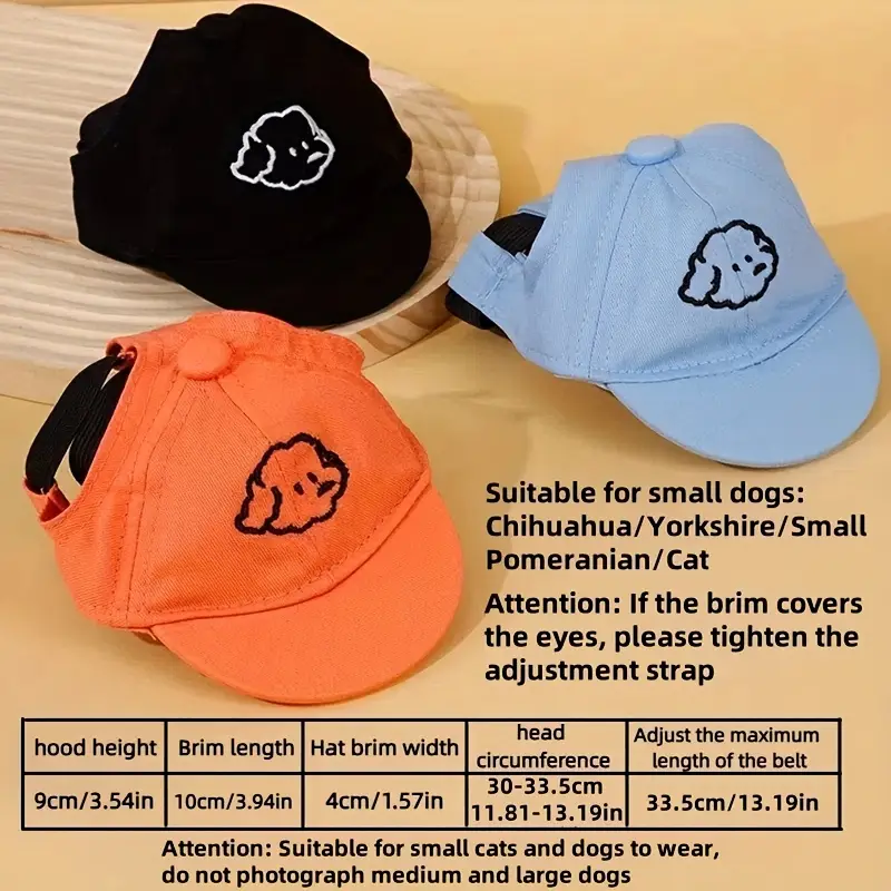 قبعة شمسية للكلاب قابلة للتعديل مع نمط تطريز كرتوني للكلاب – مناسبة للقطط والكلاب الصغيرة، قبعة بيسبول للحيوانات الأليفة، متوفرة بألوان متعددة