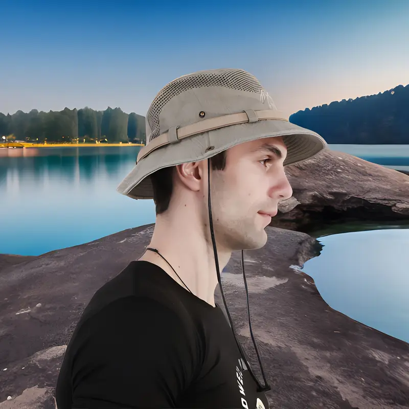 قبعة صيد رجالية خفيفة الوزن، بتهوية شبكية وحماية من الشمس، مناسبة لجميع الأنشطة الخارجية
