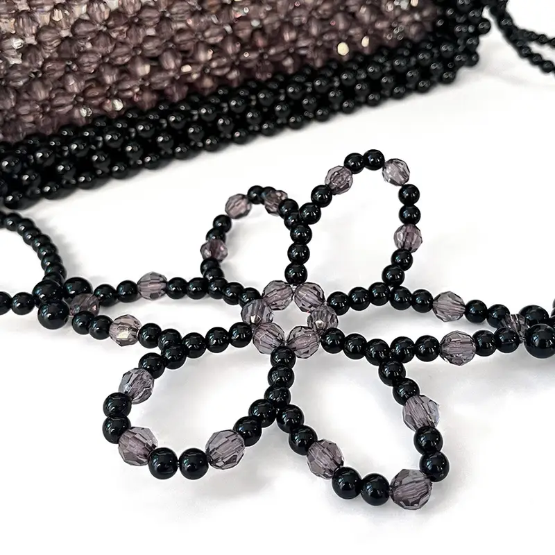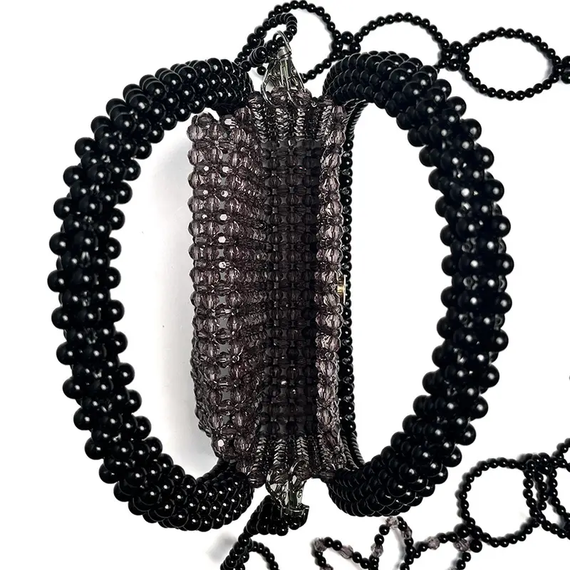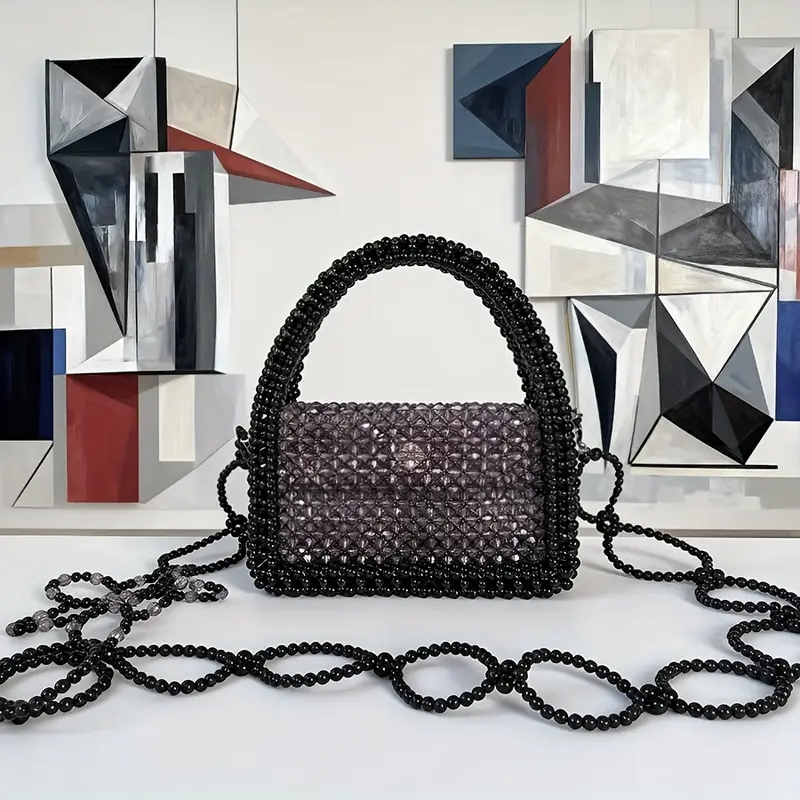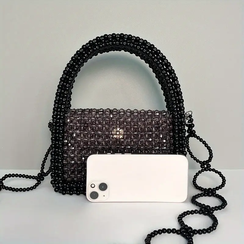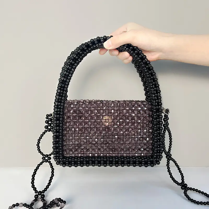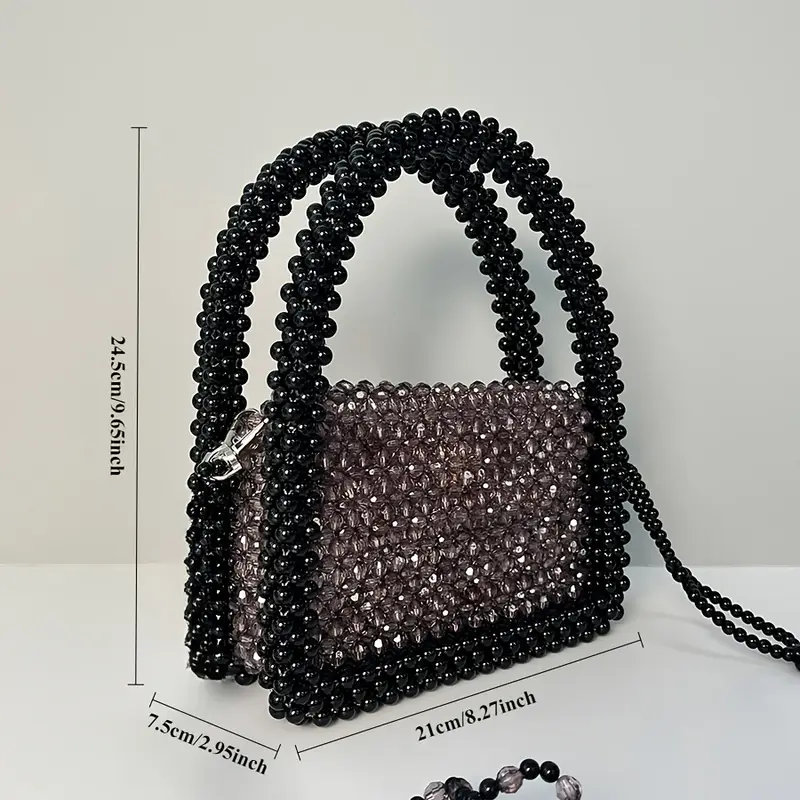 • الخامة: خرز عالي الجودة مصفوف بعناية يدوياً ليمنح الحقيبة ملمساً فخماً ومظهراً لامعاً.