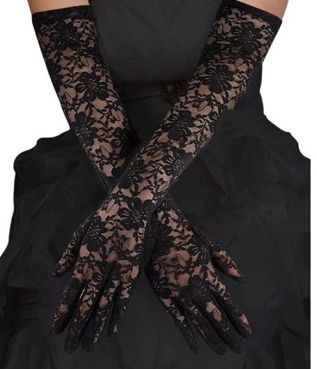 40cm Long Floral Lace Gloves with Chrysanthemum Design – Elegant for Weddings, Halloween, and Valentine’s\
