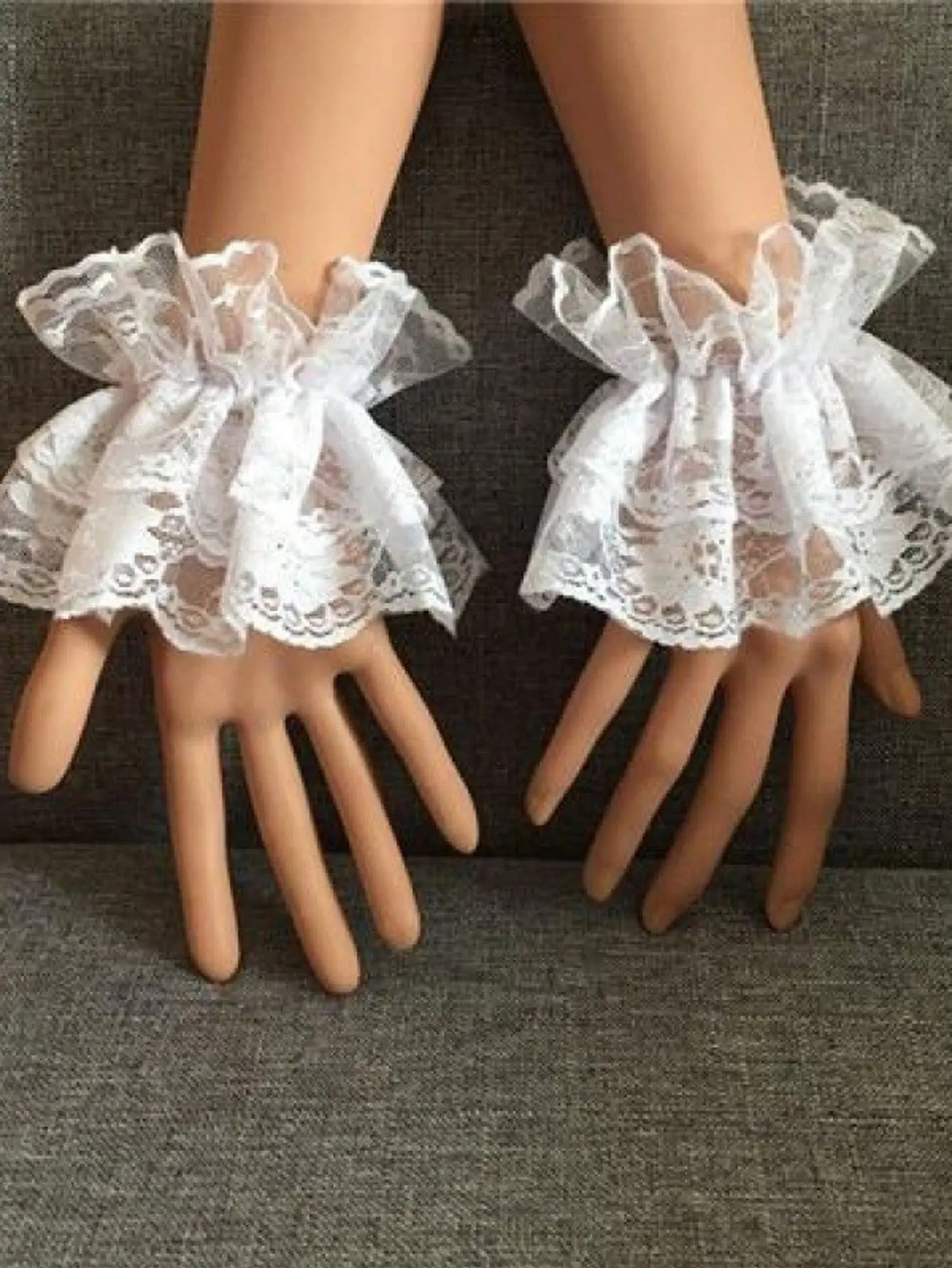 Lolita Style Fingerless Lace Ruffled Wrist Gloves – Elegant Party Dress Accessory