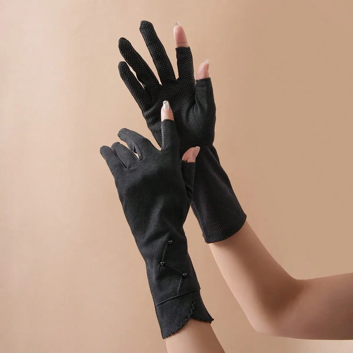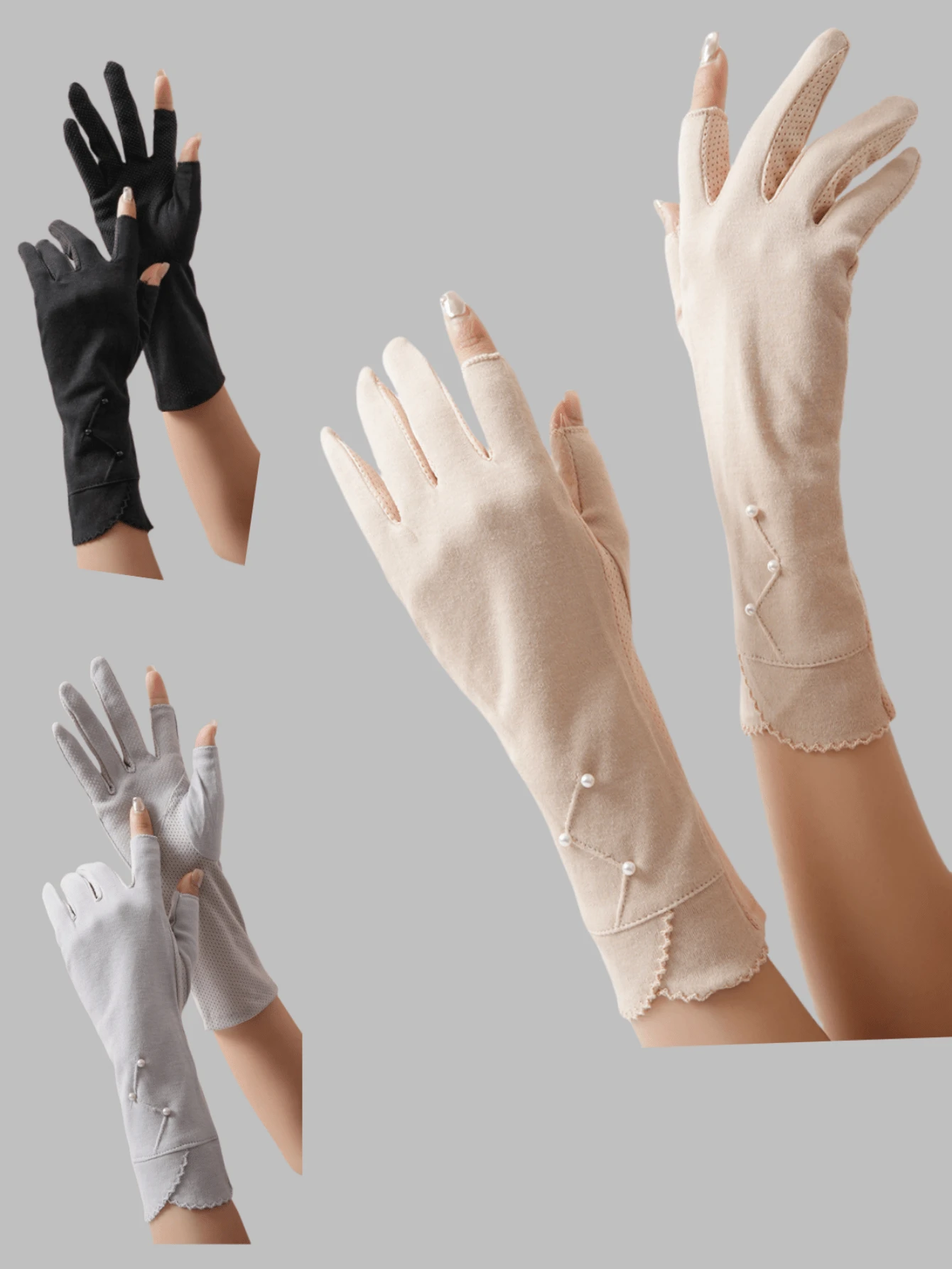 قفازات نسائية طويلة بدون أصابع مزينة باللؤلؤ، حماية من الشمس وأناقة للمناسبات