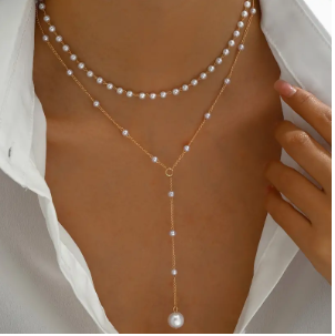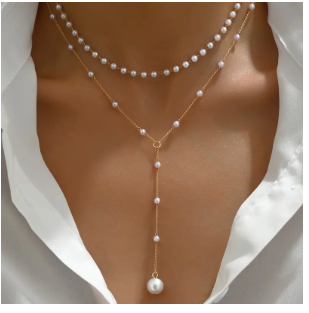 - اللؤلؤ المقلد: واحدة من أبرز ميزات القلادة هي اللؤلؤ المقلد الذي يتخلل التصميم. اللؤلؤ يضيف لمسة من الفخامة والأنوثة، ويعكس الضوء بطريقة رائعة. على الرغم من كونه مقلدًا، فإن الجودة والمظهر العام يجعله يبدو كالأصلي، ما يعطيك مظهرًا فاخرًا بأسعار معقولة.