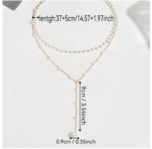 القلادة المزدوجة بطبقتين بأسلوب عتيق أنيق مع اللؤلؤ المقلد والشراشيب هي قطعة فنية تضيف لمسة من الفخامة والجمال إلى أي إطلالة. تجمع بين الأسلوب الكلاسيكي والعصري، وتناسب العديد من المناسبات، سواء كانت يومية أو خاصة. بفضل المواد المتينة والجودة العالية، ستظل هذه القلادة مميزة وأنيقة لسنوات طويلة.