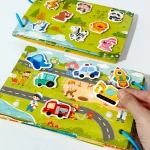 هو كتاب تعليمي تفاعلي يحتوي على صفحات ملوّنة برسومات شيقة، مرفق معها مجموعة كبيرة من الملصقات القابلة للإزالة وإعادة الاستخدام، بحيث يمكن للطفل لصقها في الأماكن المناسبة حسب الموضوع: مثل الحيوانات، وسائل النقل، الفواكه، الكائنات البحرية، وأجواء المدينة!