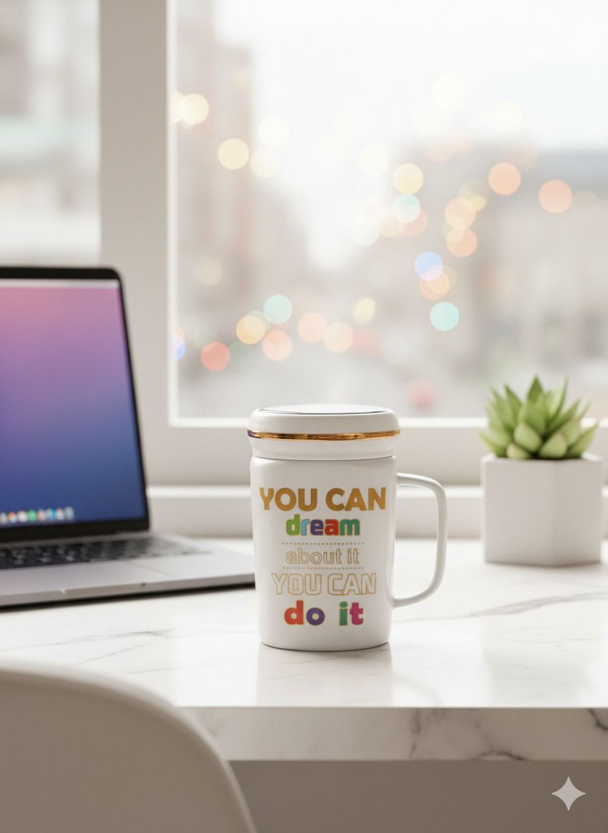 يمنحك هذا الكوب السيراميك الأنيق بداية مشرقة ليومك بفضل تصميمه العصري المزدان بعبارة تحفيزية تضفي طاقة إيجابية مع كل رشفة.