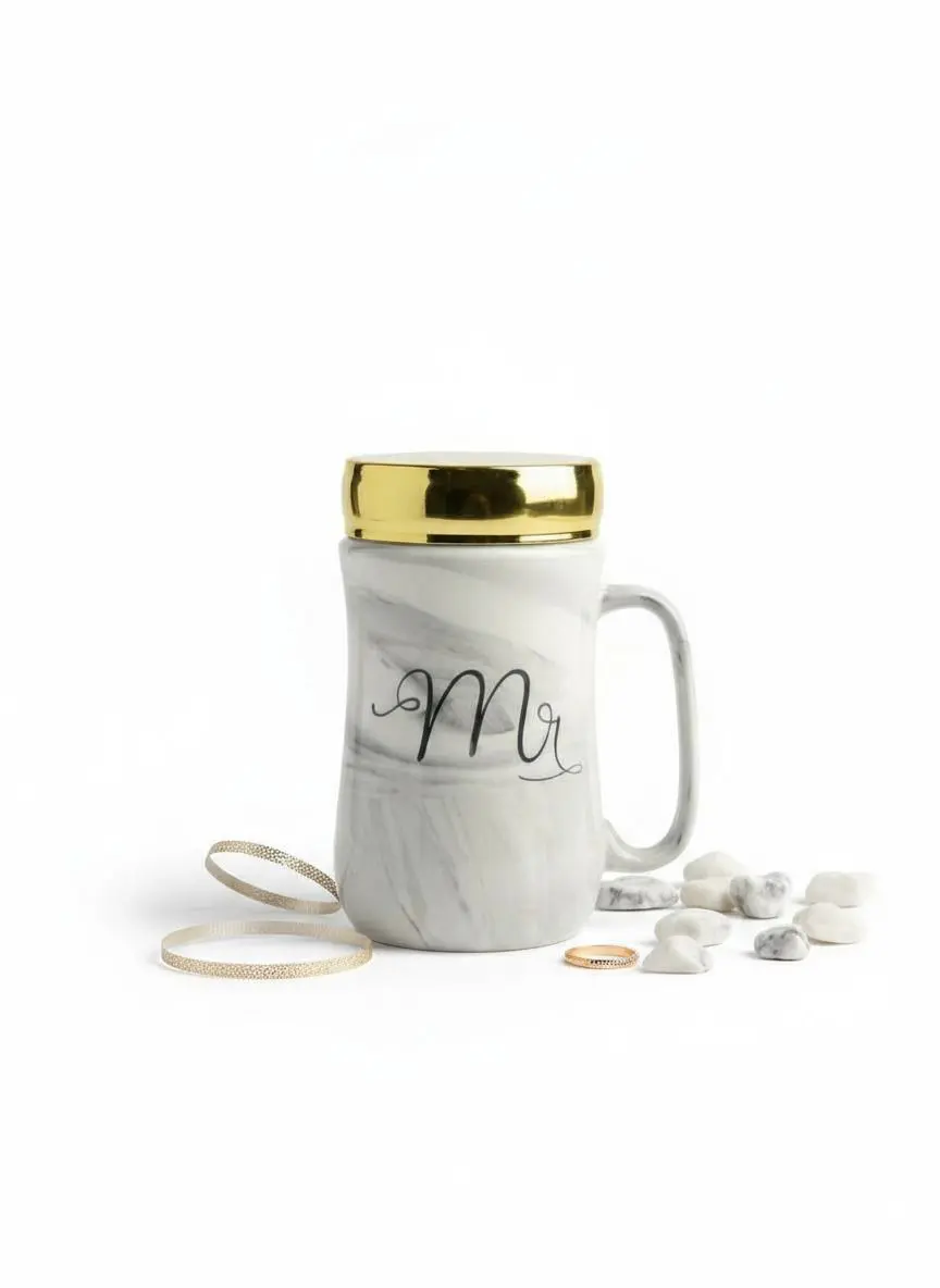 يُقدَّم هذا الكوب الخزفي الفاخر بتصميم راقٍ يجمع بين الفخامة والذوق العصري، حيث يبرز بنقشته الرخامية الأنيقة وتفاصيله الذهبية اللامعة التي تضفي عليه لمسة من الرفاهية. يتميز الكوب بحرف “Mr” الذهبي الذي يمنحه طابعًا شخصيًا مميزًا، مما يجعله خيارًا مثاليًا للاستخدام اليومي أو كهديّة راقية في المناسبات الخاصة.