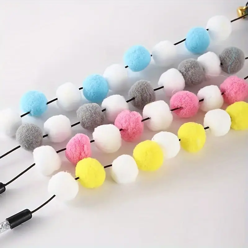 🧶 كرات قطيفة ناعمة: آمنة للمضغ واللعب، لا تسبب خدوشًا أو تهيّجًا.