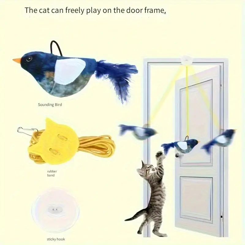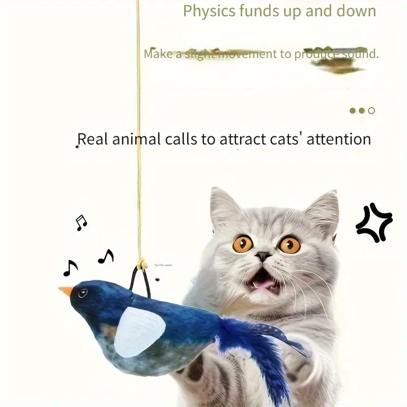 امنح قطتك تجربة لعب ممتعة وآمنة مع أحدث ألعاب المحاكاة المصممة خصيصًا لتلبية غريزتها الطبيعية في الصيد. نقدم لكم لعبة القطط المعلقة بتصميم طائر واقعي، تجربة ترفيهية لا مثيل لها تجمع بين المرح والحركة والصوت.