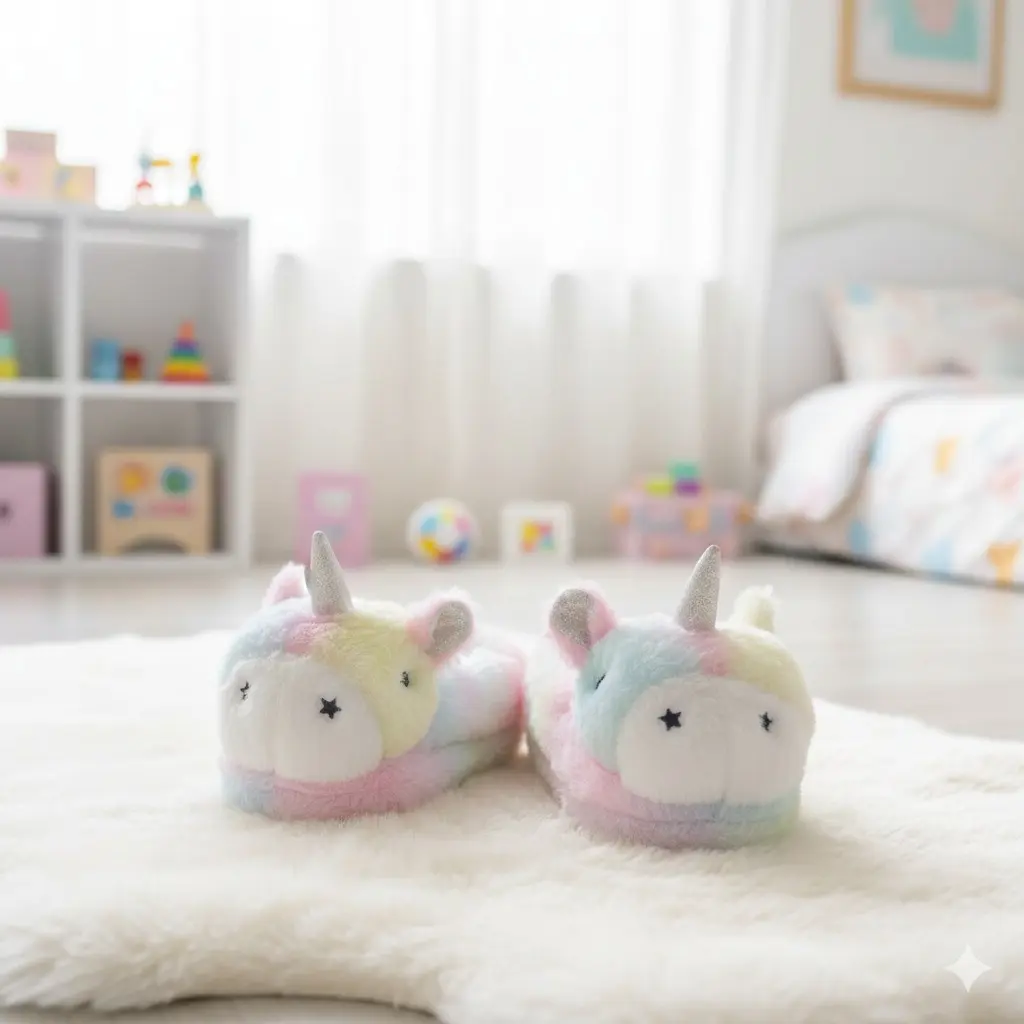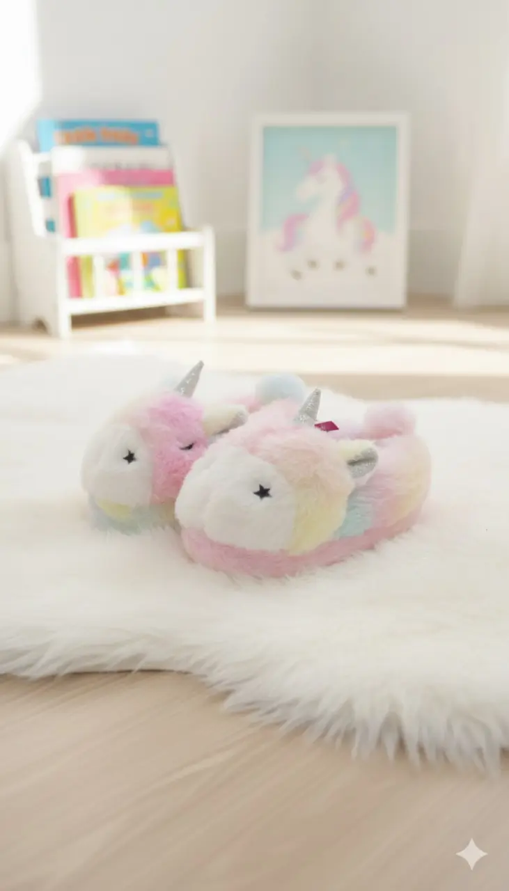 يأتي هذا اللّكلوك الشتوي للأطفال بتصميم لطيف مستوحى من شكل اليونيكورن، ليضفي لمسة من المرح والدفء على الأقدام الصغيرة. مصنوع من خامة فرو ناعمة تمنح شعورًا بالراحة في كل خطوة، مع ألوان باستيل متعددة تضيف لمسة جمالية مميزة تناسب أجواء المنزل الشتوية.