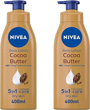 لوشن مرطب للجسم للبشرة الجافة بزبدة الكاكاو وفيتامين E من نيفيا، 2×400 مل
