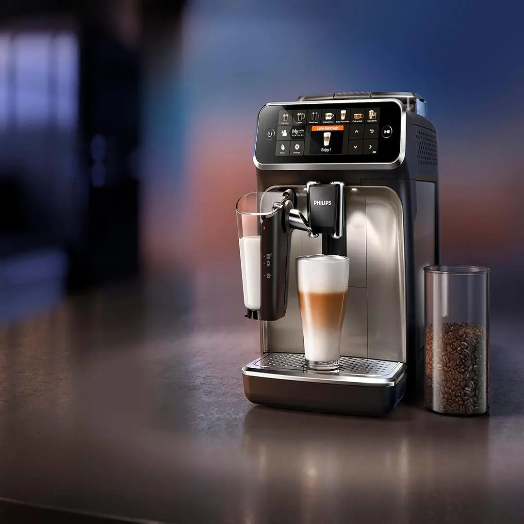 ماكينة الإسبريسو الأوتوماتيكية بالكامل Philips 5400 Series EP5447/90 – تجربة قهوة فاخرة بضغطة زر!