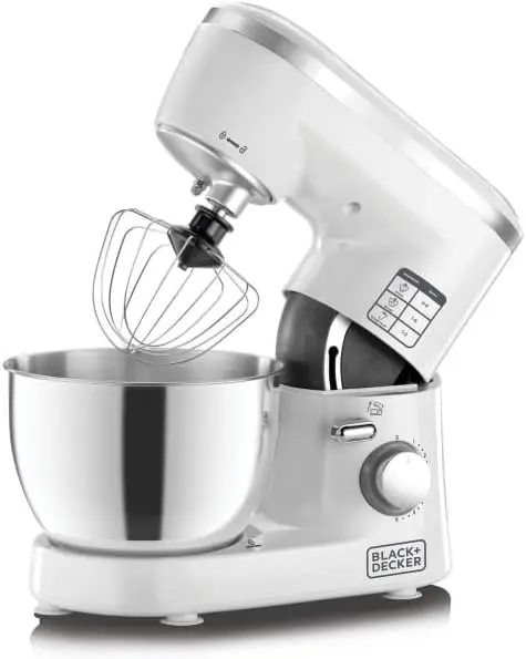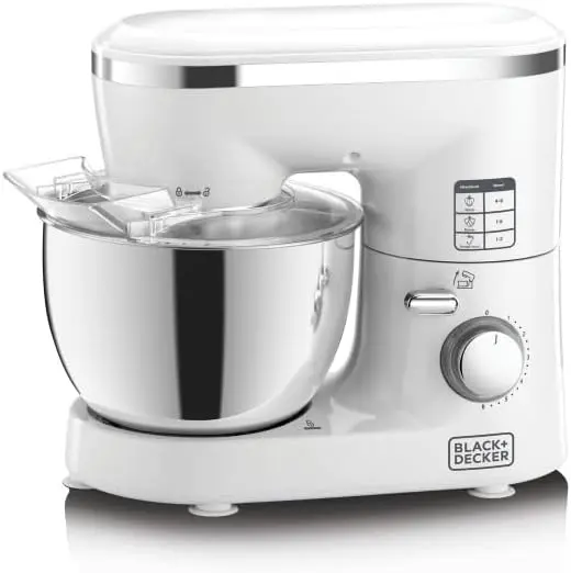 ماكينة خلاط المطبخ بلاك اند ديكر، قوة 1000 واط، سعة كبيرة 4 لتر، وعاء من الفولاذ المقاوم للصدأ، 6 إعدادات للسرعة للحصول على نتائج خبز مثالية، سهولة الخلط والعجن، SM1000-B5