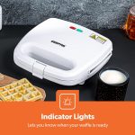 - 5. حماية من الحرارة الزائدة والتحكم بالحرارة – تتوقف ماكينة الوافل عن العمل اوتوماتيكًا بمجرد وصولها إلى درجة الحرارة المطلوبة لتجنب الإفراط في الطهي والتحكم في درجة الحرارة المطلوبة لجعل الوافل لذيذًا أكثر