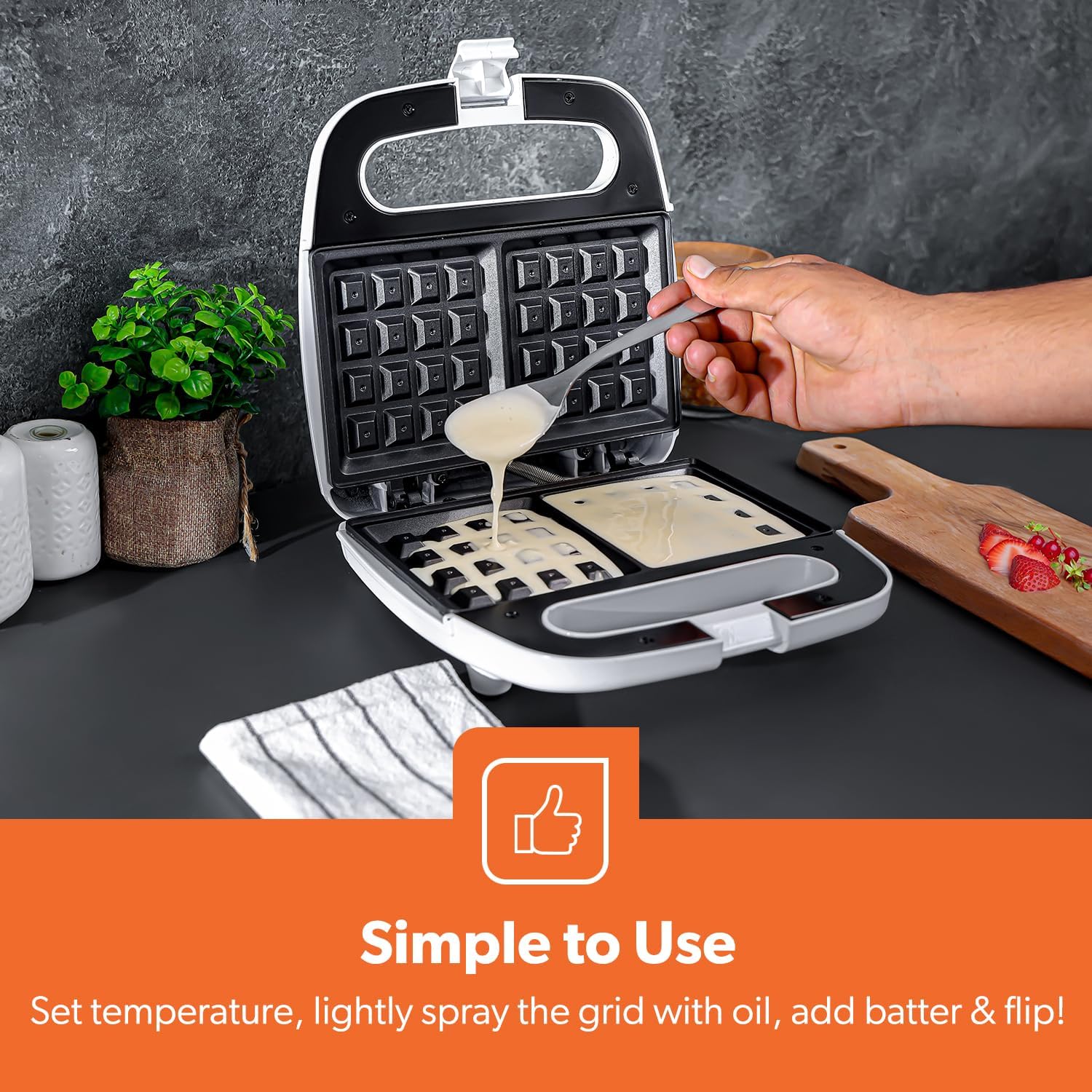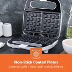 - 4. طبق طهي غير لاصق وسهل التنظيف – يضمن طبق الطبخ غير اللاصق حصولك على الوافل سليمًا. يحافظ على الشكل، بما أن الطعام لا يلتصق به، فسيكون تنظيفه سهلًا.