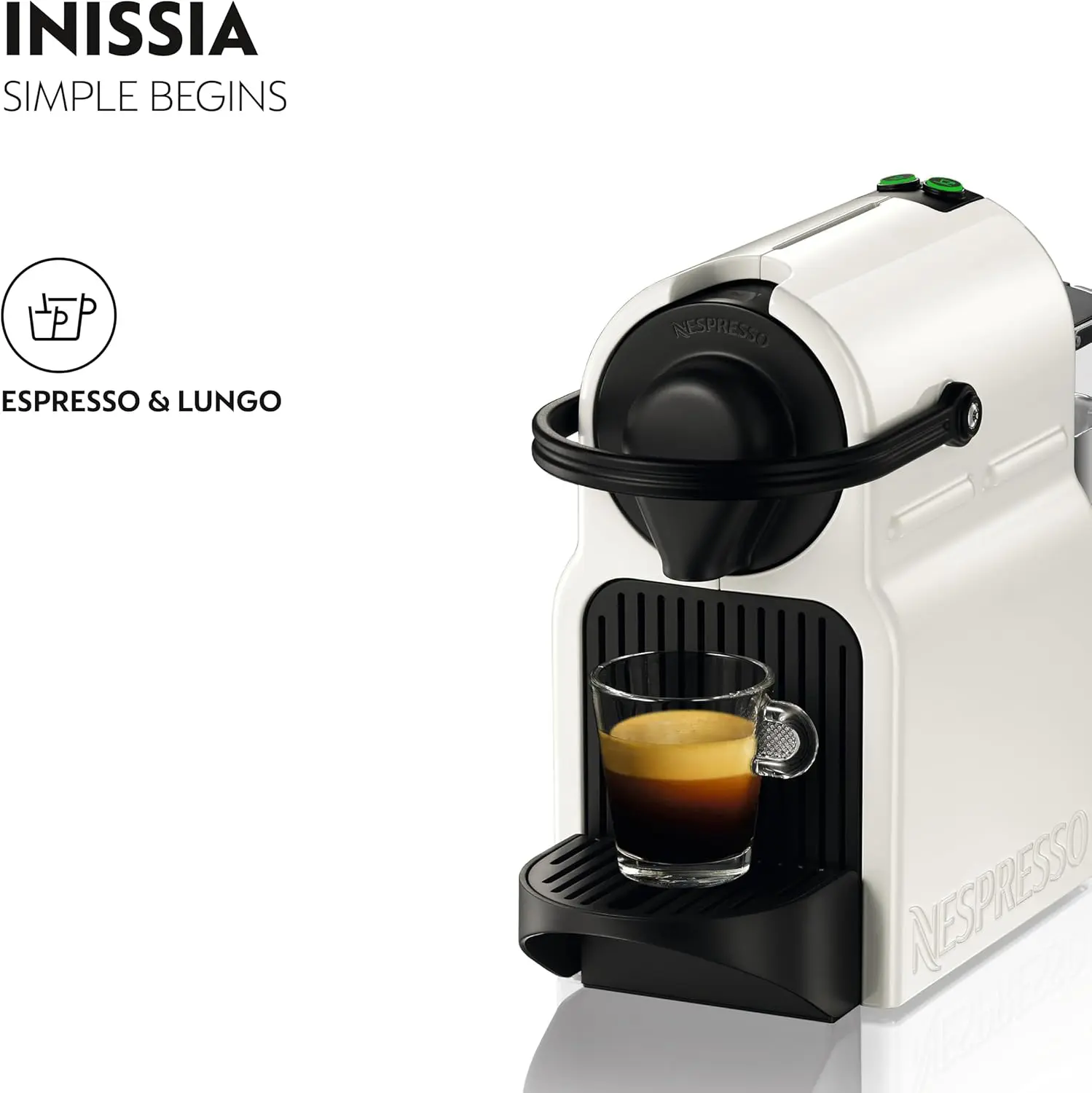 Two coffee options: Choose between Espresso and Lungo.