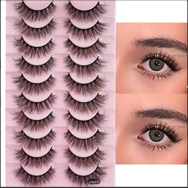 - ذاتية اللصق: لا حاجة لاستخدام مادة لاصقة إضافية، فقط قم بإزالة الرموش من الورقة والصقها على الجفن.