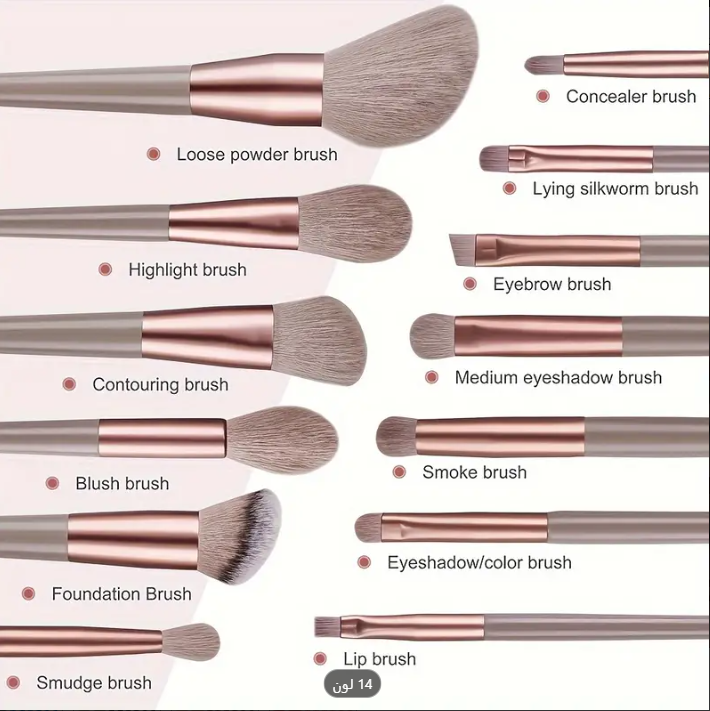 - فرش متنوعة: تشمل فرش لتطبيق أحمر الخدود، كريم الأساس، ظلال العيون، وغيرها، مما يجعلها شاملة لتلبية جميع احتياجات المكياج.