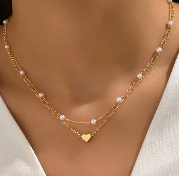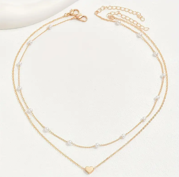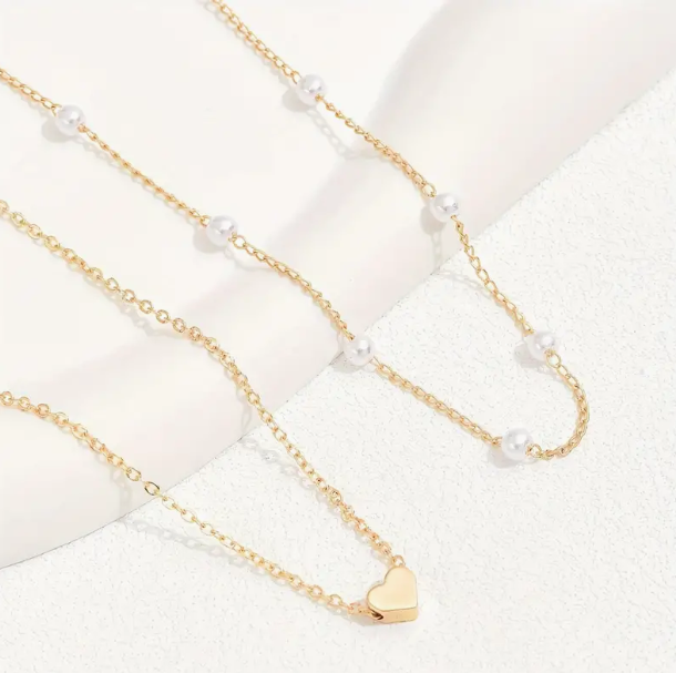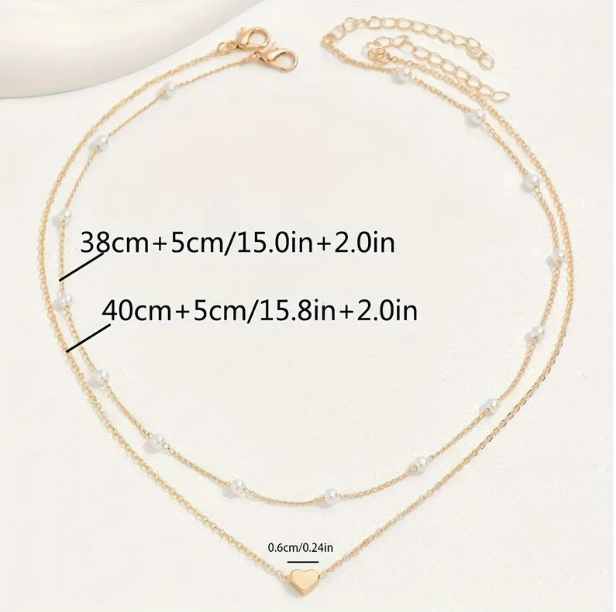 مجموعة قلادة قلب الموضة 2 قطعة بأناقة سلسلة زخرفة من اللؤلؤ الاصطناعي قلادة عارضة للإكسسوارات العادية