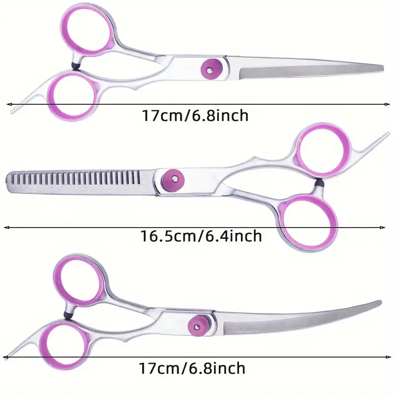 تتضمن المجموعة مقصات متعددة الاستخدامات بتصميم دقيق وعالي الجودة، مناسبة لتهذيب شعر الكلاب والقطط من مختلف الأنواع والأحجام، مع مشط معدني لتسريح الفراء وتسهيل التهذيب.