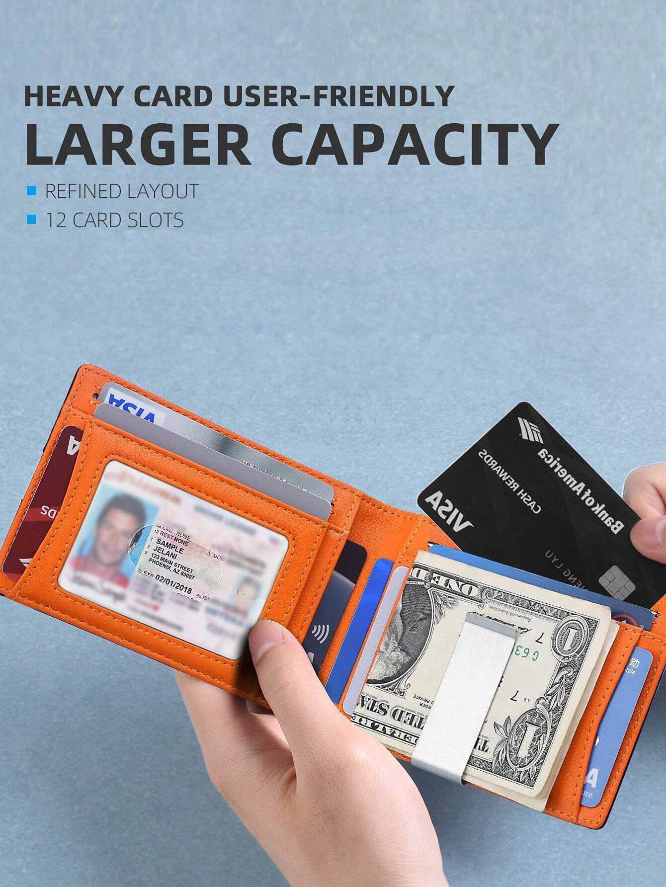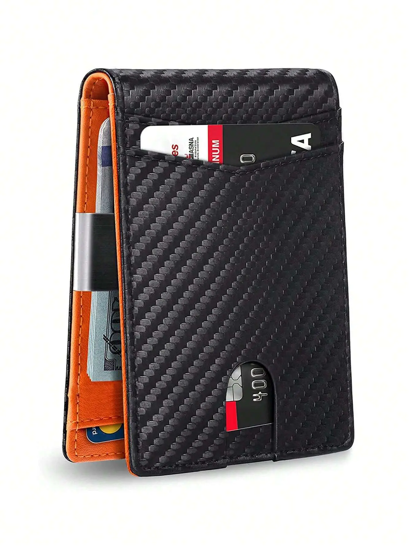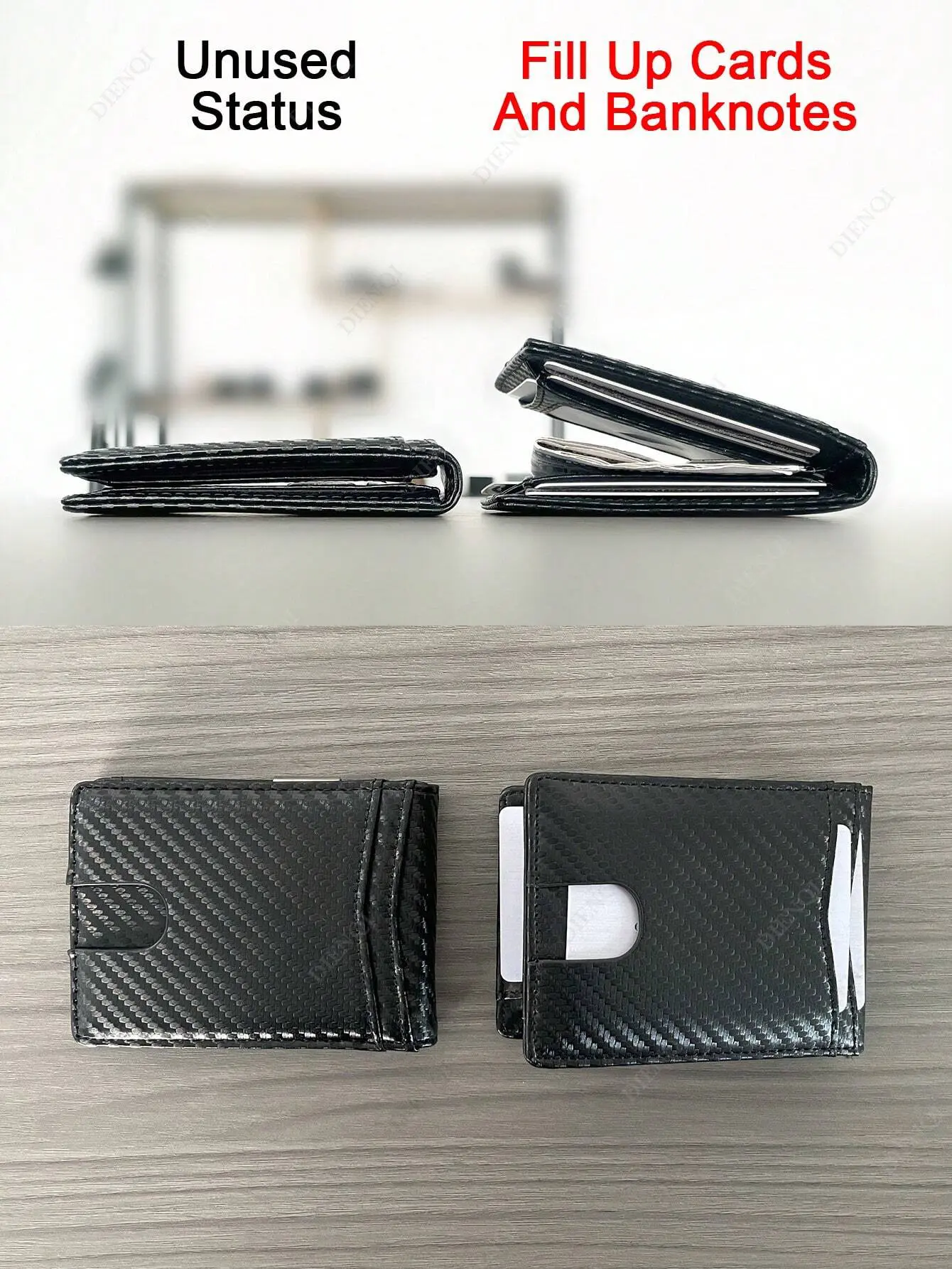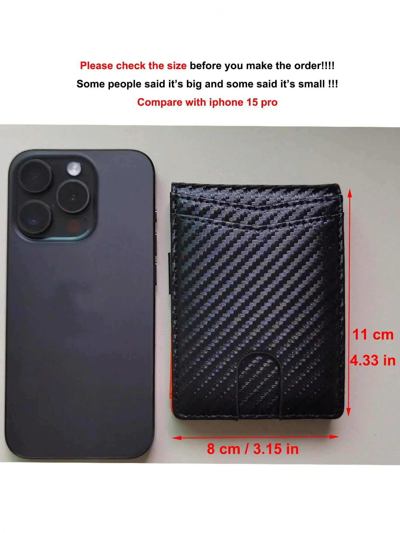 محفظة كربون فايبر للرجال بطبعة الدولار ومشبك نقود، محفظة أنيقة لحفظ البطاقات والنقود