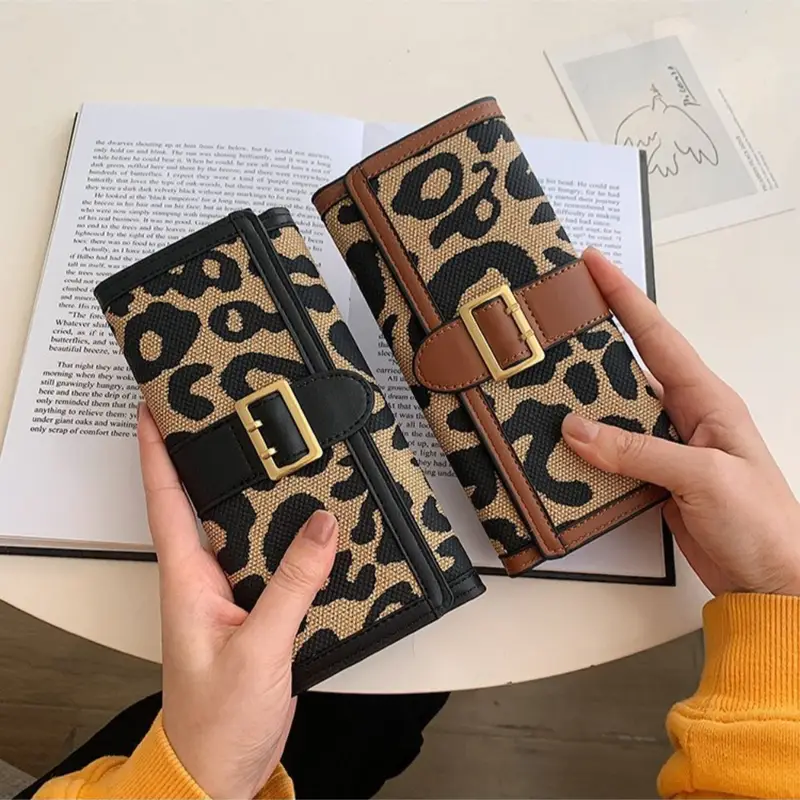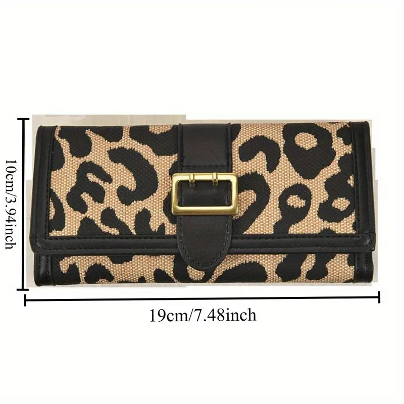 محفظة نسائية بتصميم كلاسيكي أنيق وطبعة جلد النمر، ثلاث طيات وإغلاق بزر