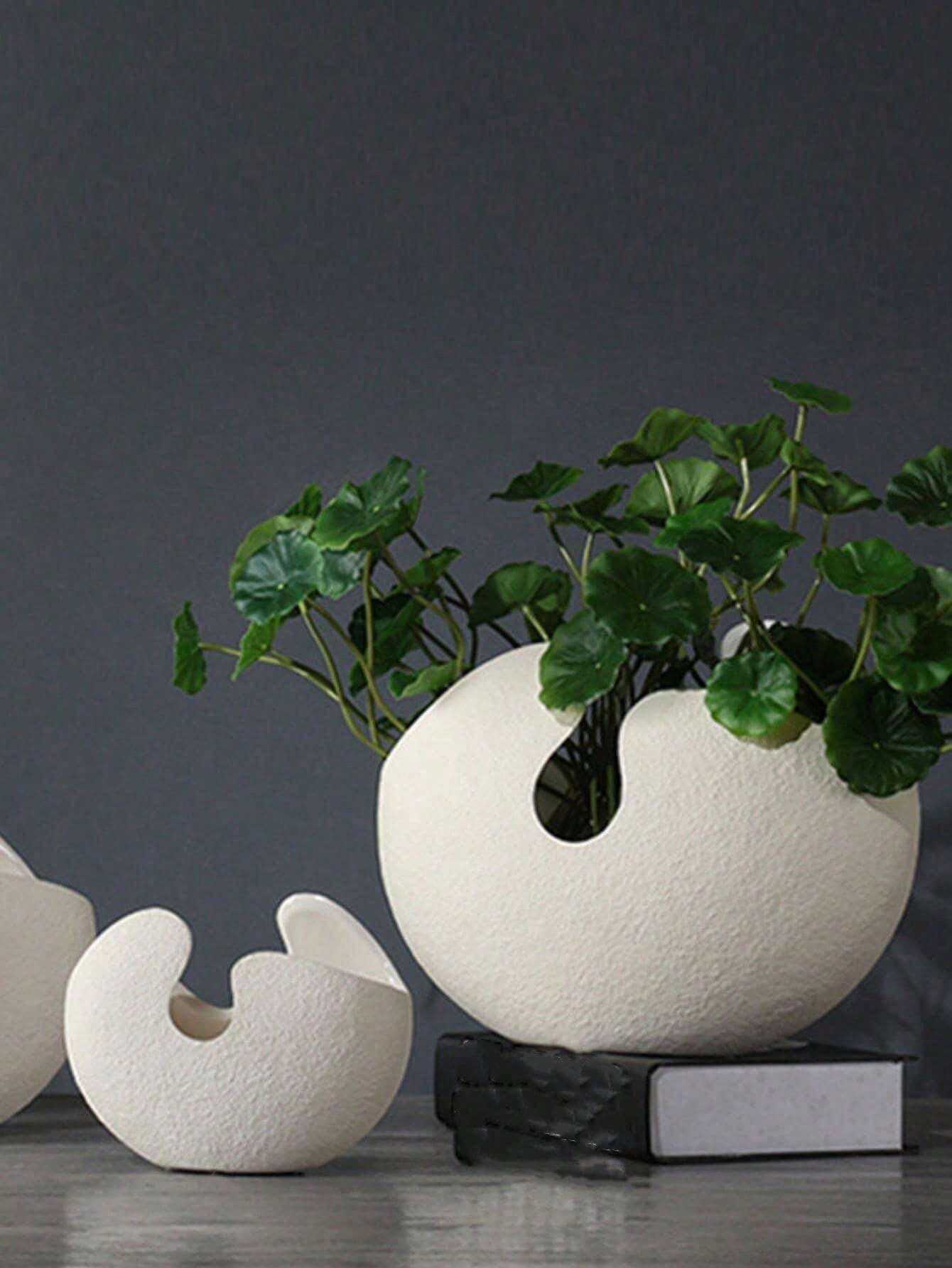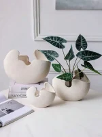 مزهرية سيراميك يدوية بلمسة عصرية بسيطة – قطعة ديكور مركزية أنيقة للطاولة