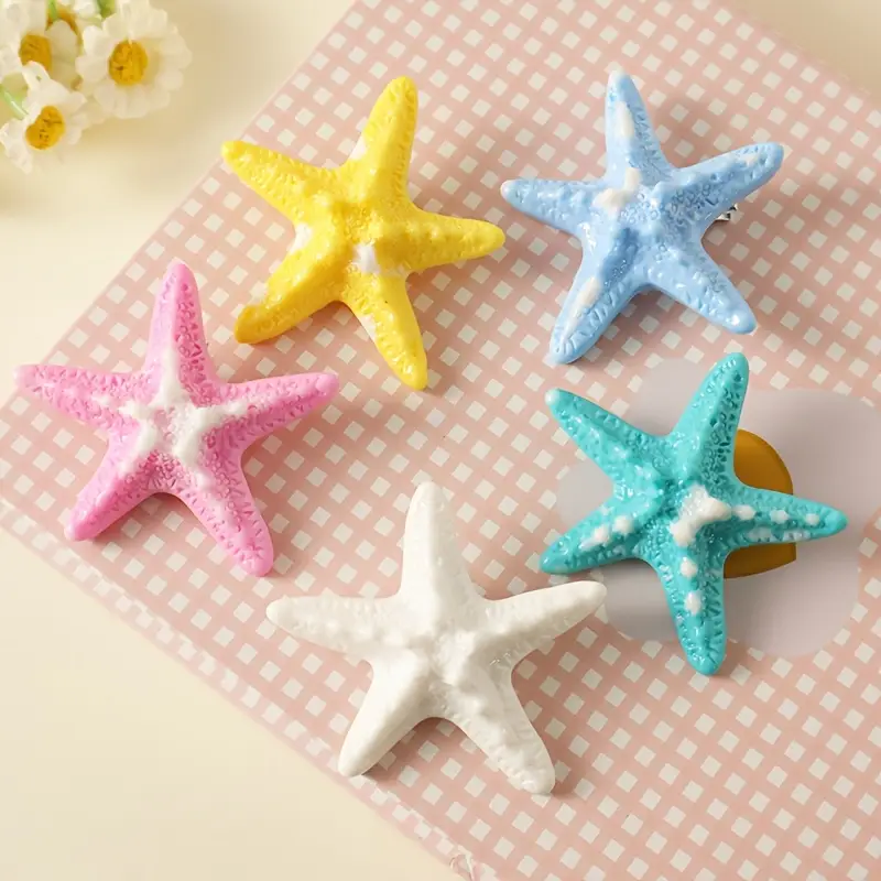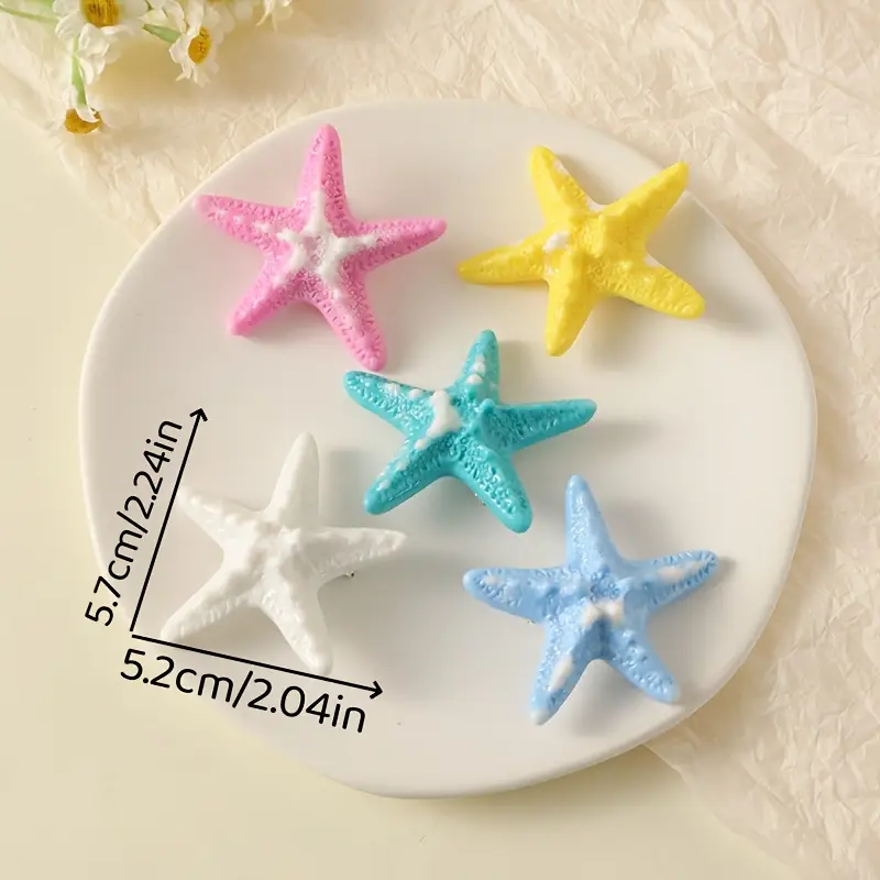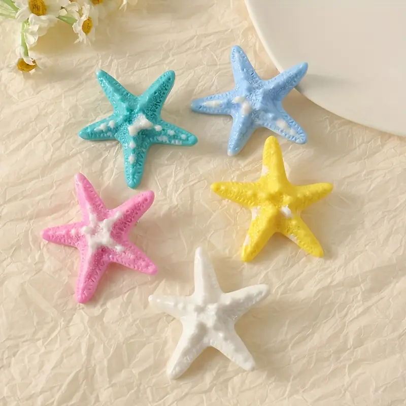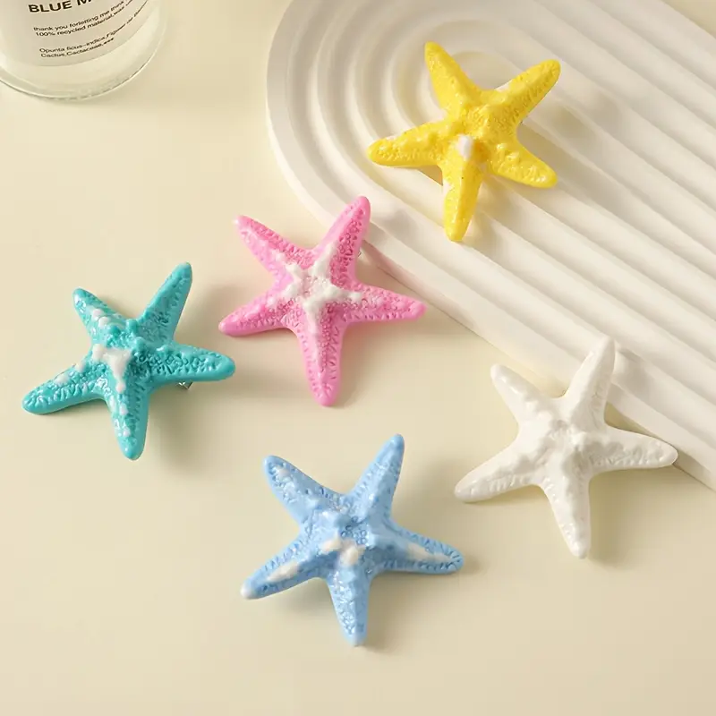 خمس مشابك شعر كبيرة مستوحاة من نجم البحر، تأتي بألوان مرحة وخامة راتينج فاخرة.