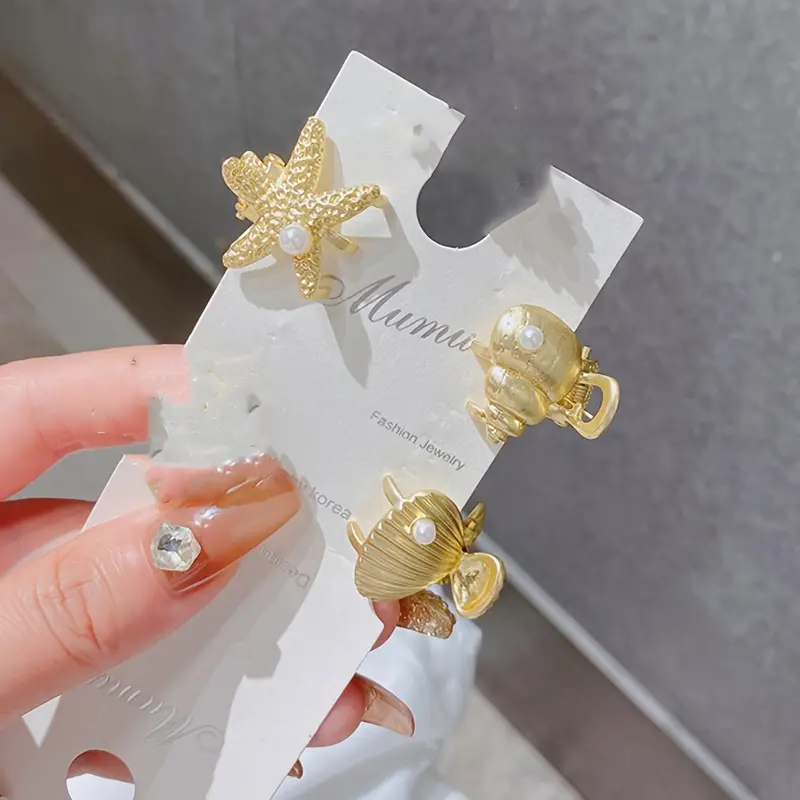 أضيفي لمسة من سحر البحر إلى إطلالتك اليومية مع مجموعة مشابك الشعر المعدنية بتصميم نجمة البحر والصدف. هذه المجموعة الأنيقة والمميزة صُممت لتجمع بين العملية والجمال، وتناسب كل الأوقات والمناسبات.