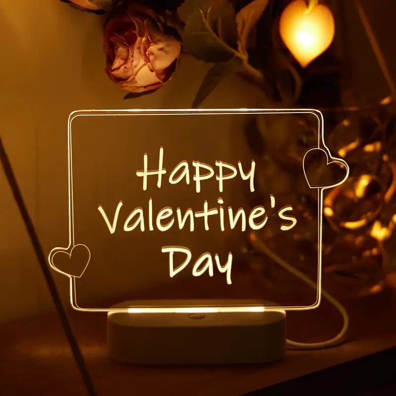 مصباح قلب ثلاثي الأبعاد مع قلم للرسائل، ضوء ليلي LED يعمل بـ USB قابل للكتابة، ديكور مناسب للهدايا والمناسبات
