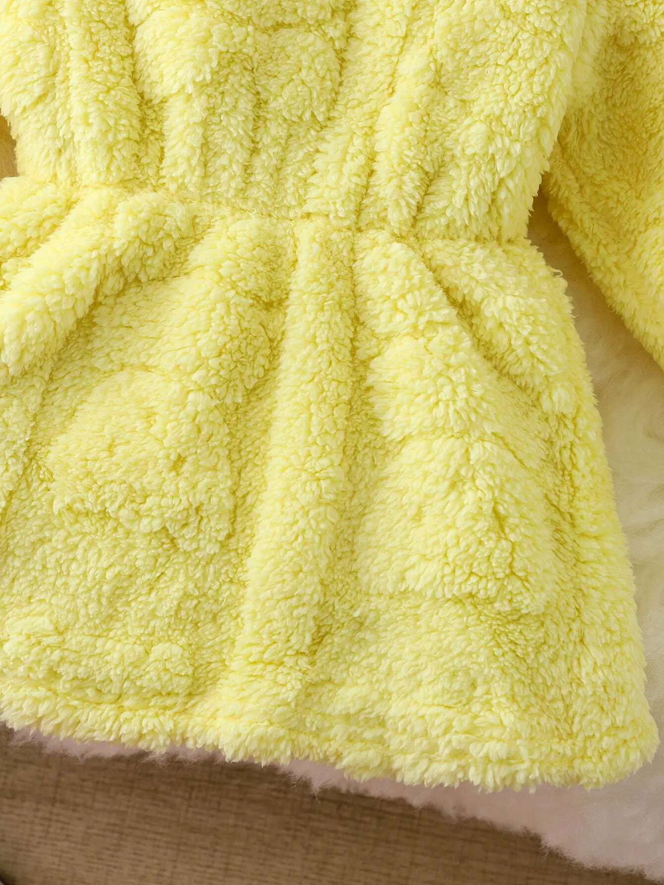يُقدَّم هذا المعطف الشتوي الأنيق للفتيات بتصميم فاخر من الفرو الناعم الذي يمنح دفئًا وراحة لا مثيل لهما، مع لون أصفر باستيل ناعم يضفي لمسة من الأناقة والبهجة على إطلالة الطفلة خلال أيام الشتاء الباردة.