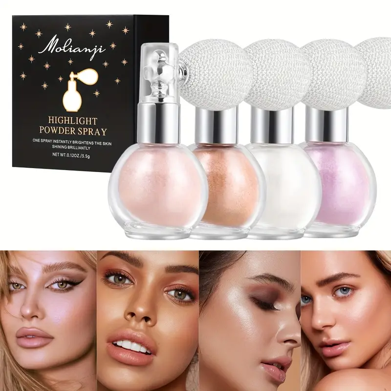 مولانجي بودرة تظليل ورذاذ توهج لؤلوي للجسم، بودرة كونتور طبيعي مقاوم للماء ولمسة لامعة لكل المناسبات