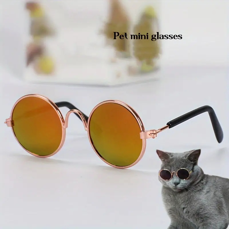 نظارات أزياء دائرية للحيوانات الأليفة، إكسسوار مرِح للقطط والكلاب الصغيرة، مثالي لجلسات التصوير ومشاركة الصور على مواقع التواصل