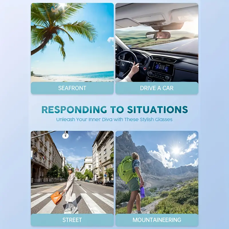 تمنحك هذه النظارات أسلوبًا مميزًا يناسب التصوير الشارعي، رحلات السفر، حفلات الشاطئ، والقيادة اليومية، كما تضيف لمسة أنيقة إلى ملابسك الكاجوال أو الأنيقة على حد سواء.