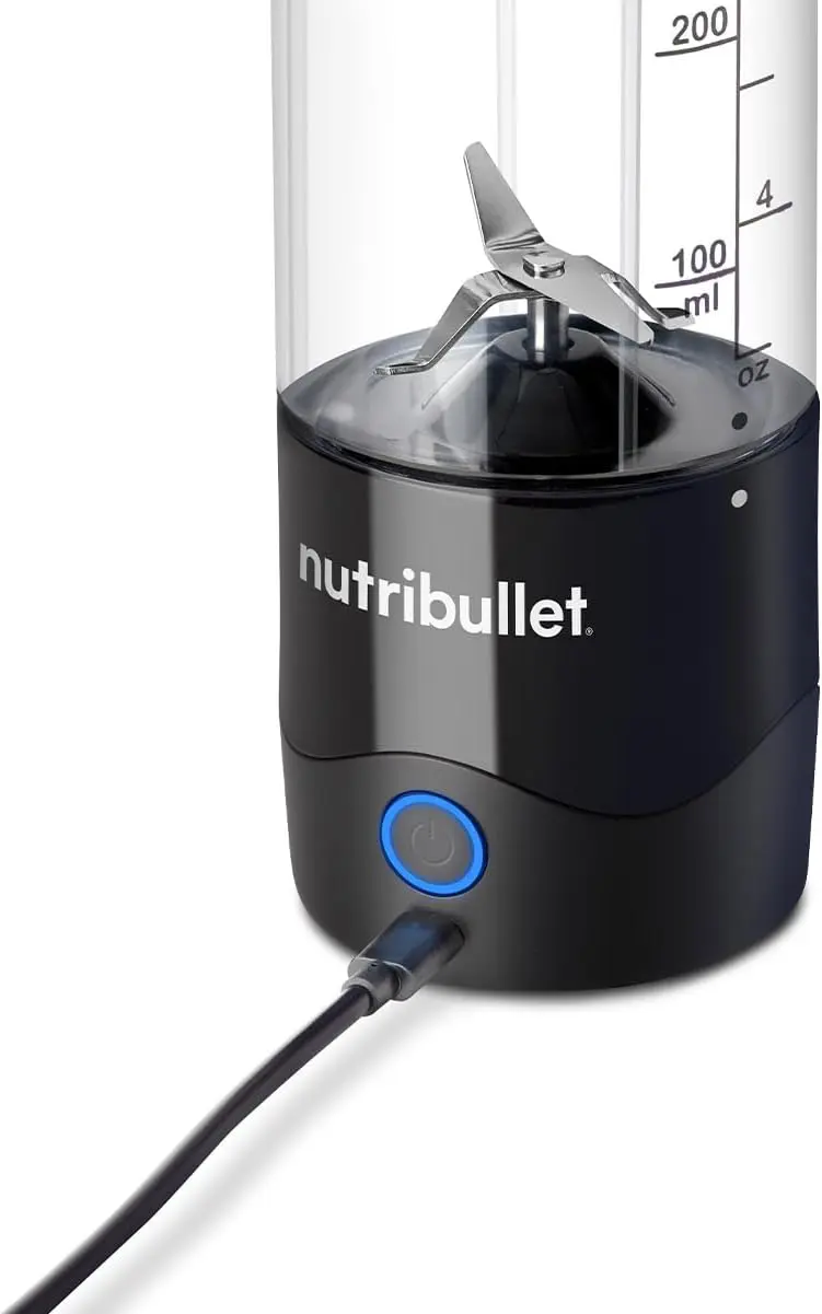 خلاط محمول من نوتري بوليت- شفرة استخراج قوية، سعة كوب 475 مل، غطاء للوجبات الجاهزة، مع كابل شحن USB نوع C ودليل المستخدم (استخدام اللغة العربية غير مؤكد)، يوفر أكثر من 15 دورة، لون أسود