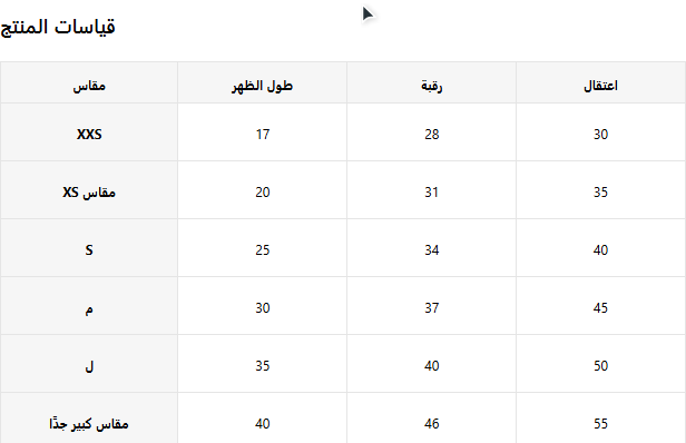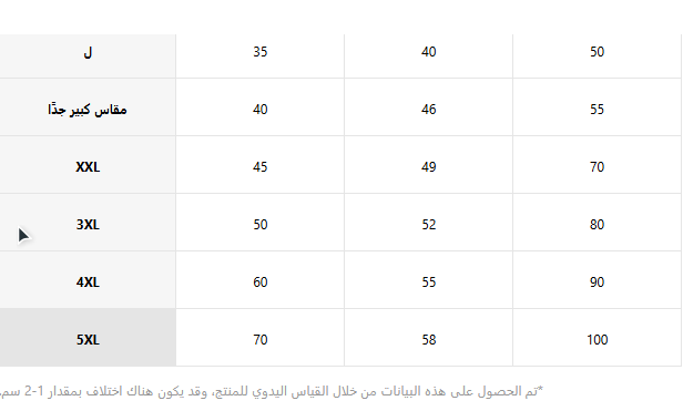 *تم الحصول على هذه البيانات من خلال القياس اليدوي للمنتج، وقد يكون هناك اختلاف بمقدار 1-2 سم.