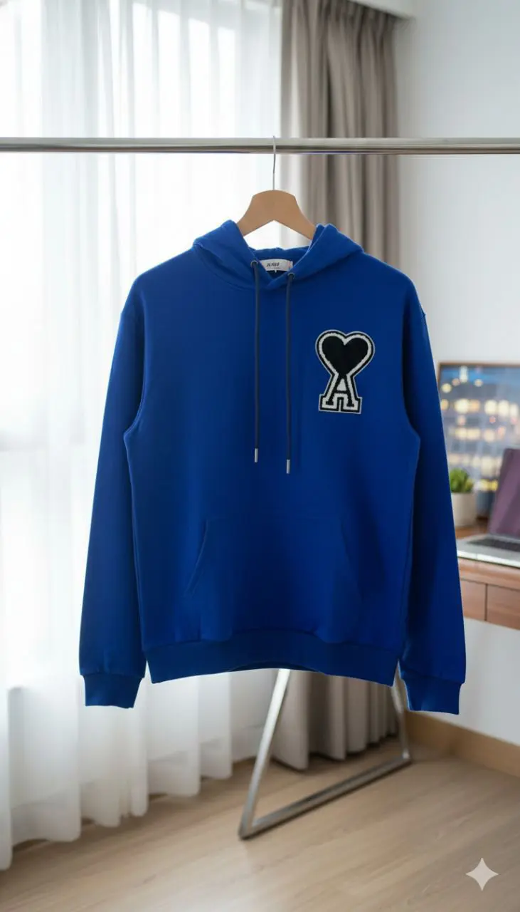 يُقدَّم هذا الهودي النسائي الكاجوال بتصميم أنيق يجمع بين الراحة والأسلوب العصري، بلونه الأزرق الملكي الجذاب وتفاصيله الراقية التي تضيف لمسة من التميز. يتميز بشعار قلب مطرّز على الصدر يعكس الطابع الأنثوي الأنيق، مع خامة ناعمة وغطاء رأس قابل للتعديل ليمنح الدفء والراحة في الإطلالات اليومية.