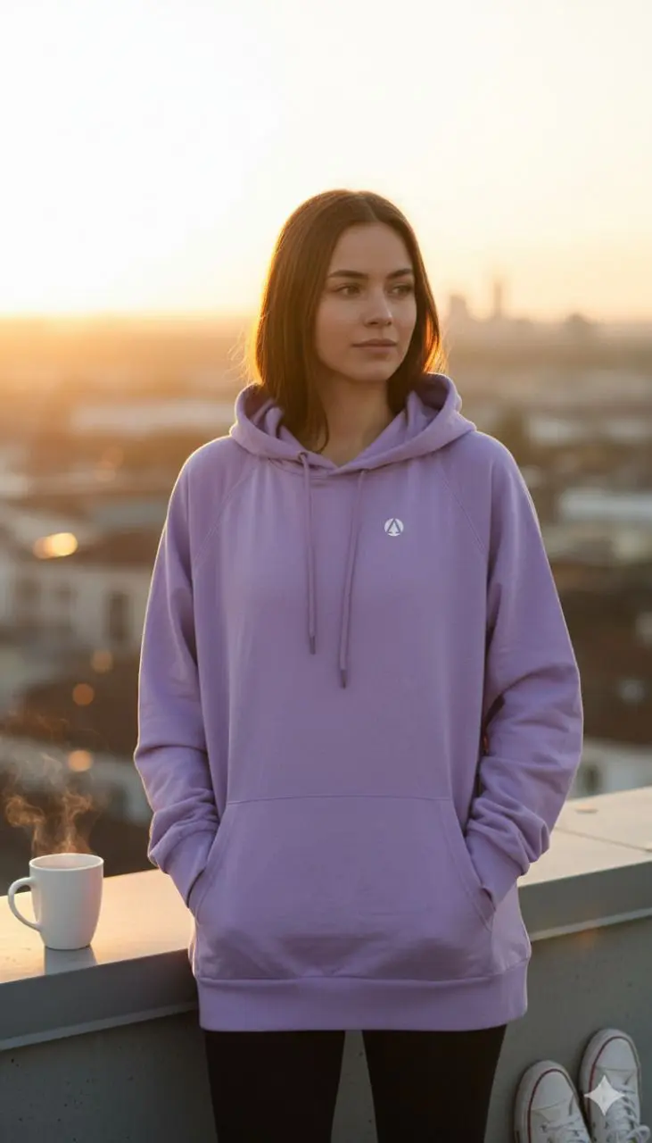 يأتي هذا الهودي النسائي بلون بنفسجي فاتح أنيق ليجمع بين الراحة والمظهر العصري في قطعة واحدة.