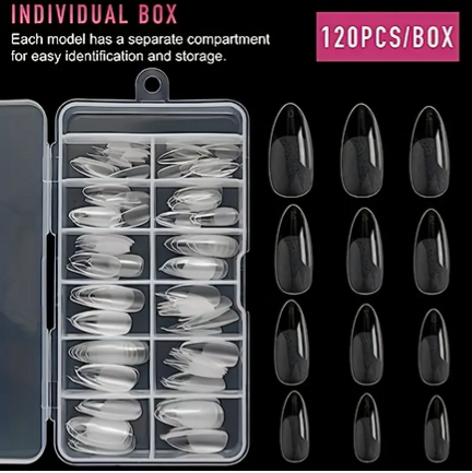 120 قطعة أظافر بشكل بيضاوي كاملة – 12 أحجام – تشطيب غير لامع – مثالية لاستخدام صالونات التجميل