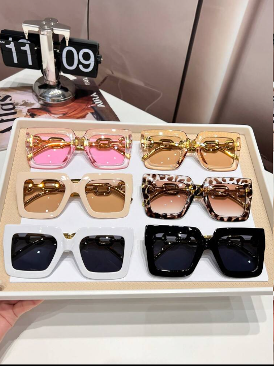 6 قطع نظارات شمسية عصرية بإطار مربع كيوت بطراز رياضي كلاسيكي النساء
