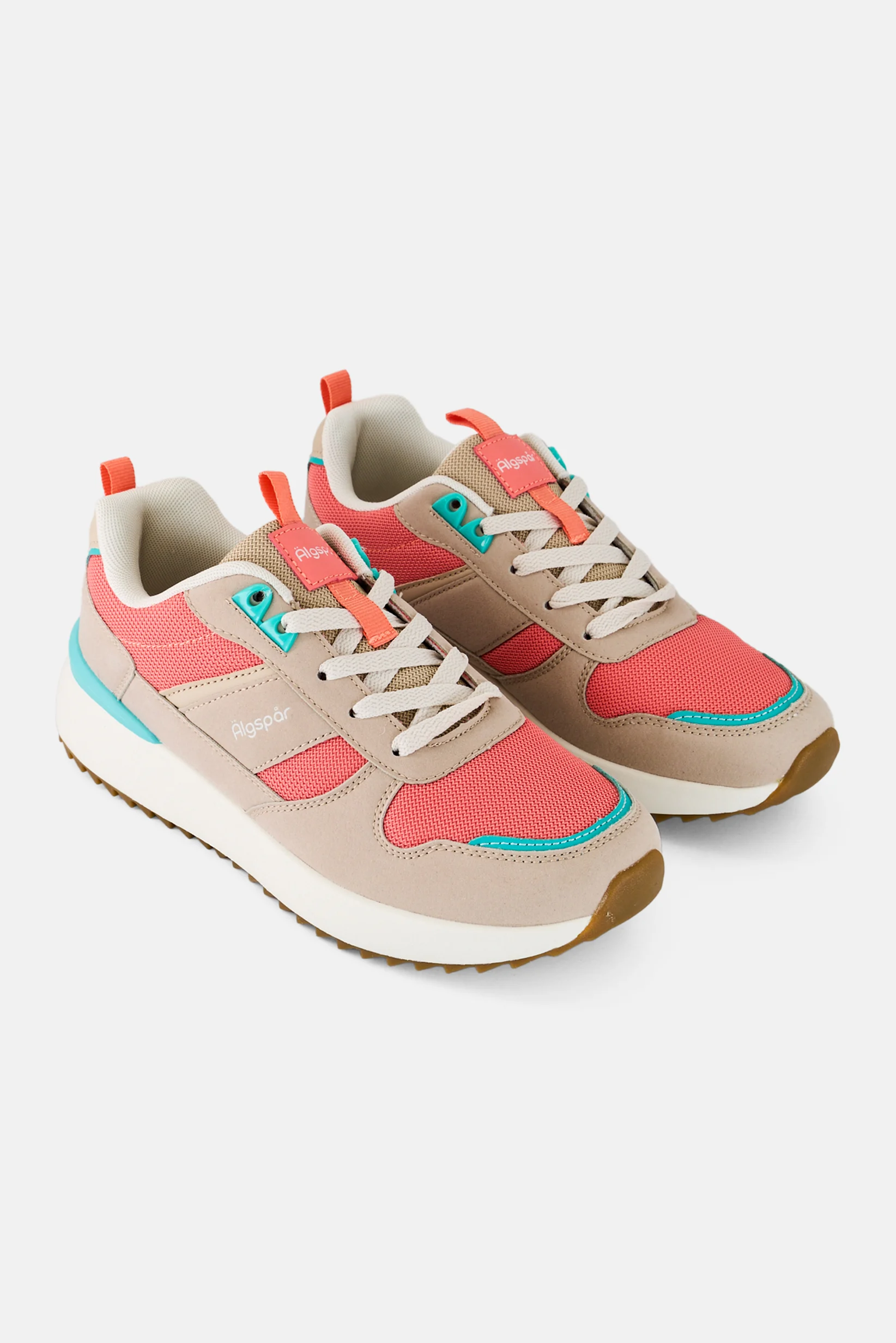 Algspar حذاء نسائي للمشي لمسافات طويلة برباط وشعار العلامة التجارية، متعدد الألوان