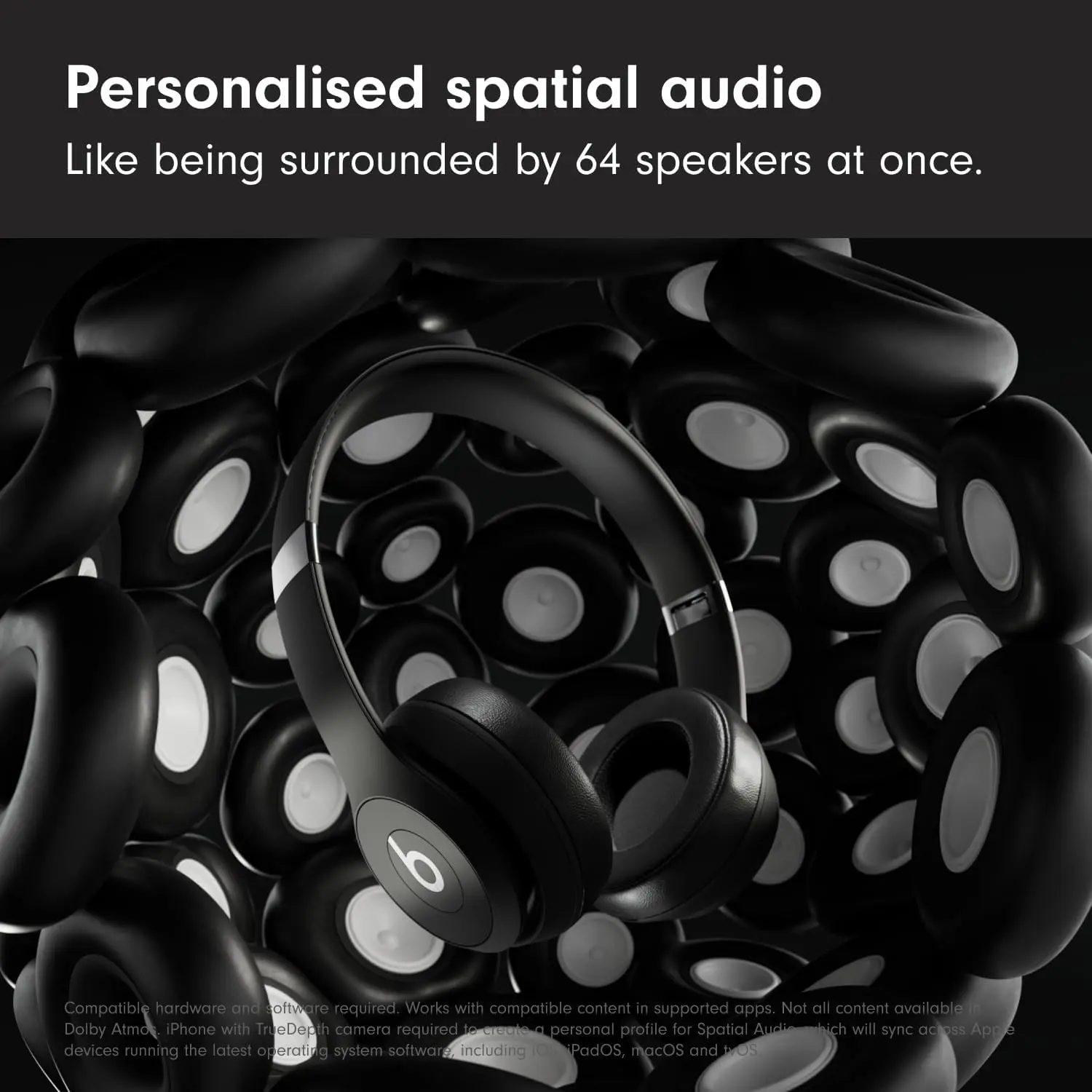 Beats Solo 4 have personalised spatial audio with dynamic head tracking and use built-in gyroscopes and accelerometers to surround you with sound as you move, creating a truly immersive listening experience on Apple platforms. You can customise your spatial audio in your iOS settings by going to Settings > Personalised Spatial Audio and following the on-screen instructions.