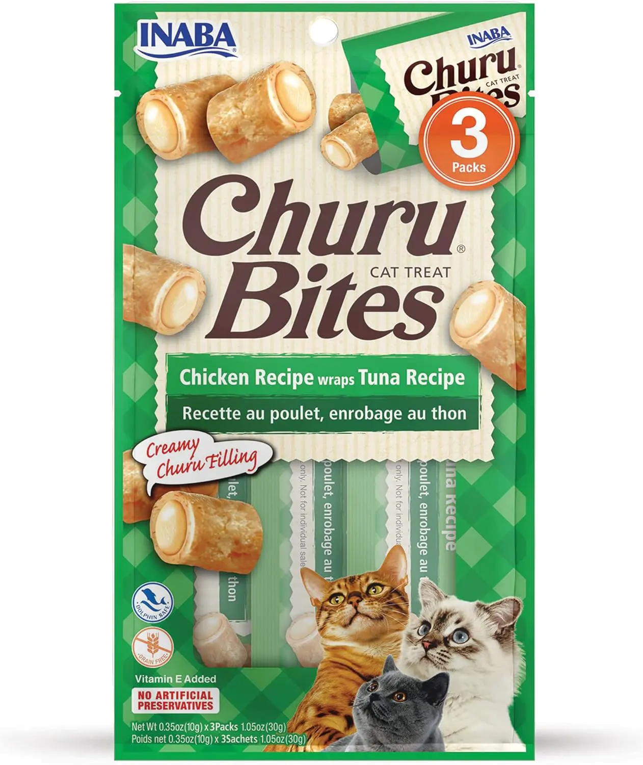 INABA Churu Bites، تشورو بايتس للقطط من INABA، وجبة خفيفة بنكهات متنوعة 3×10 جم