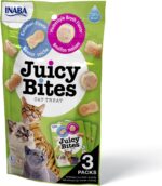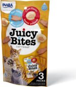 تمنح INABA Juicy Bites القطط تجربة فريدة بفضل نكهاتها المتنوعة وقوامها الطري الذي يسهل تناوله.