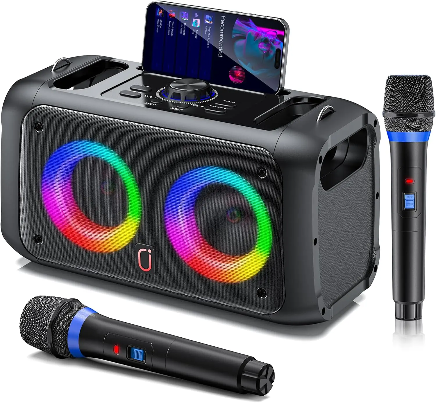 • JYX Karaoke Machine with 2 Wireless Microphones,Portable Bluetooth Speaker for Adults & Kids,PA System Singing Karaoke Speaker with LED Lights,Supports TF Card/USB, AUX in,TWS for Party