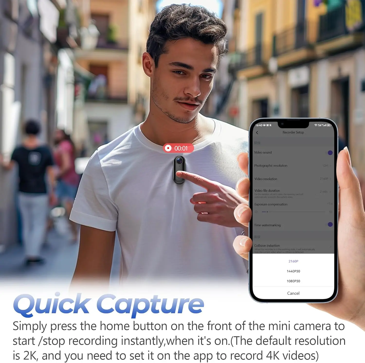 LENND 4k Action Camera,Mini Vlogging Camera,Small Body Camera with IPX7 Waterproof,Underwater Camcorder,Hands-Free POV Recording, Helmet Cam for Cycling, Motorcycle(32G Card)