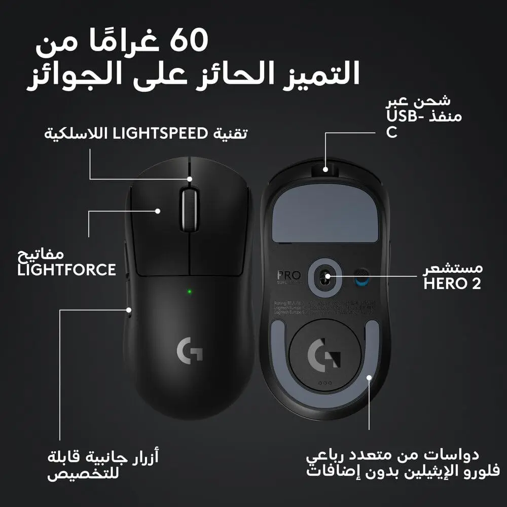 Logitech G PRO X SUPERLIGHT 2 LIGHTSPEED Wireless Gaming Mouse, Lightweight, 4K polling, LIGHTFORCE Hybrid Switches, HERO 2 Sensor, 32,000 DPI, 5 Programmable Buttons, USB-C Charging, PC, Mac – BlackLogitech G PRO X SUPERLIGHT 2 LIGHTSPEED Wireless Gaming Mouse, Lightweight, 4K polling, LIGHTFORCE Hybrid Switches, HERO 2 Sensor, 32,000 DPI, 5 Programmable Buttons, USB-C Charging, PC, Mac – Black