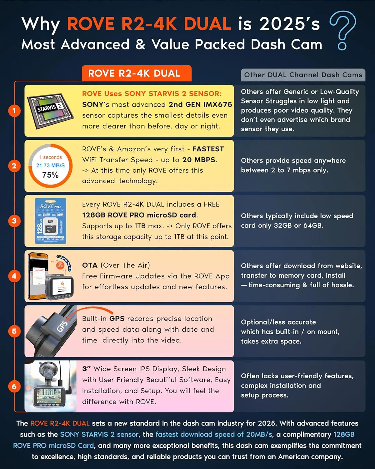 ROVE R2-4K DUAL Dash Cam Front and Rear, STARVIS 2 Sensor, FREE 128GB Card Included, 5G WiFi – up to 20MB/s Fastest Download Speed with App, 4K 2160P/FHD Dash Camera for Cars, 3″ IPS, 24H Parking Mode
