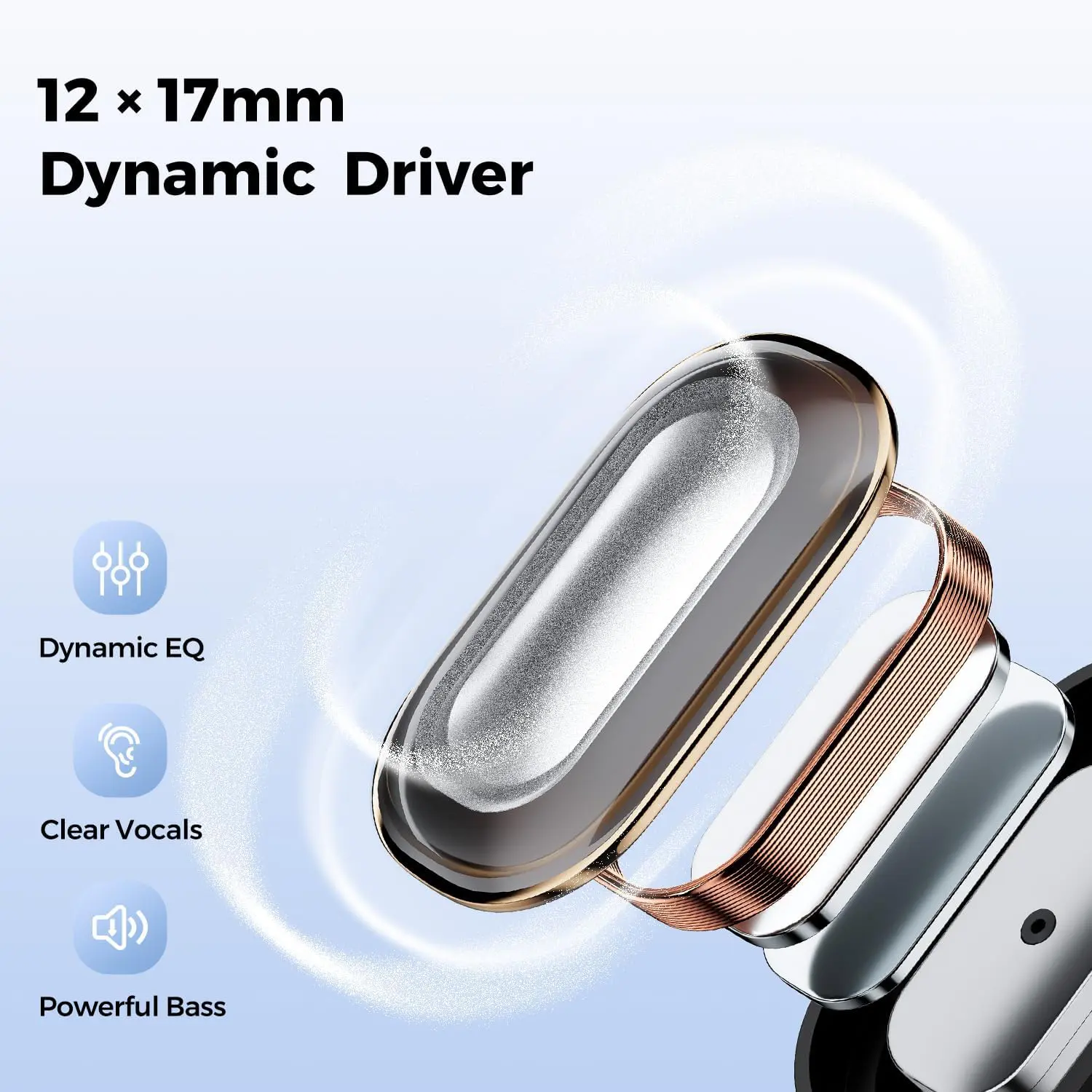 - 【12x17mm Dynamic Driver & Custom Sound】Enjoy immersive audio with a 12x17mm oval driver and Dynamic EQ tuning for crystal highs, balanced mids, and punchy bass bluetooth earphones. Personalize your listening experience via the PeatsAudio APP, which offers adjustable EQ profiles and directional audio optimization.